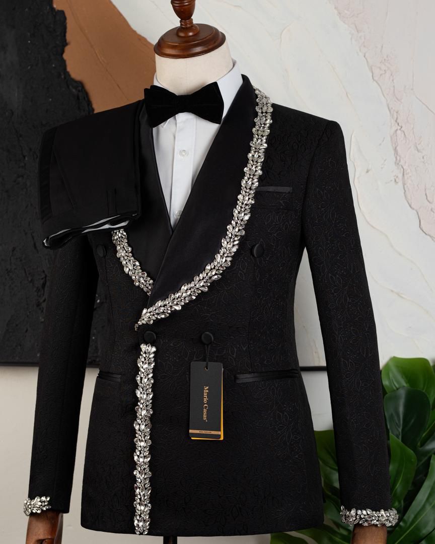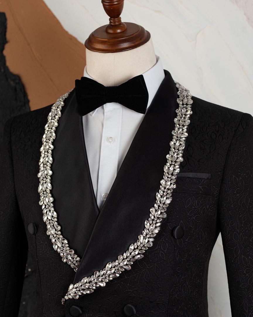 Smoking de Luxe "Mario Casas" – Noir Brodé à Cristaux et Revers Satin