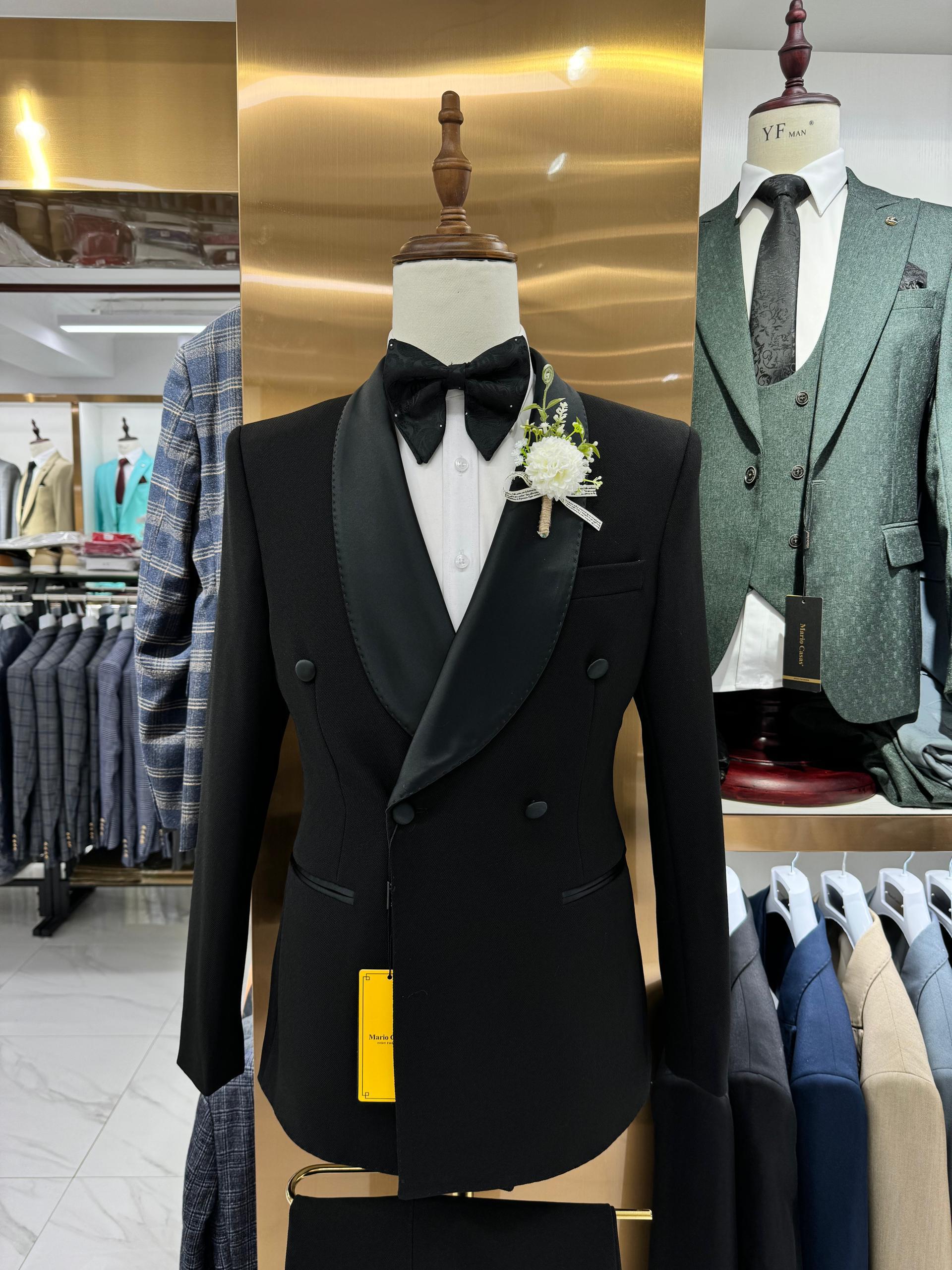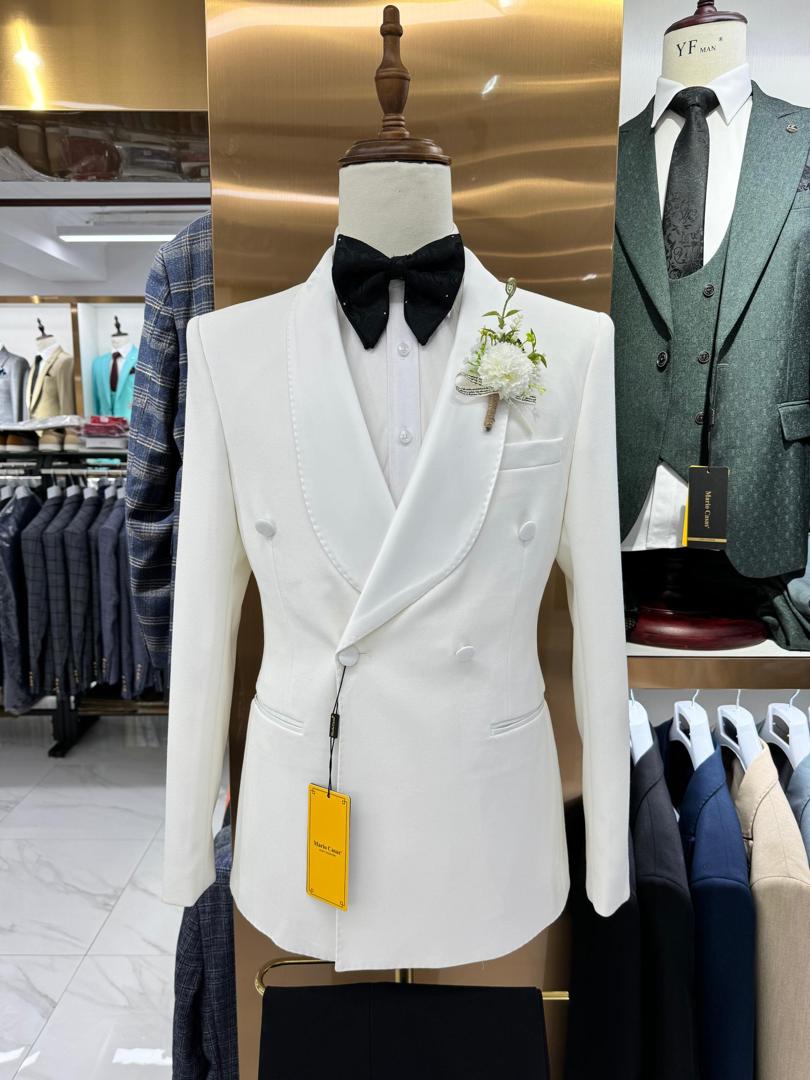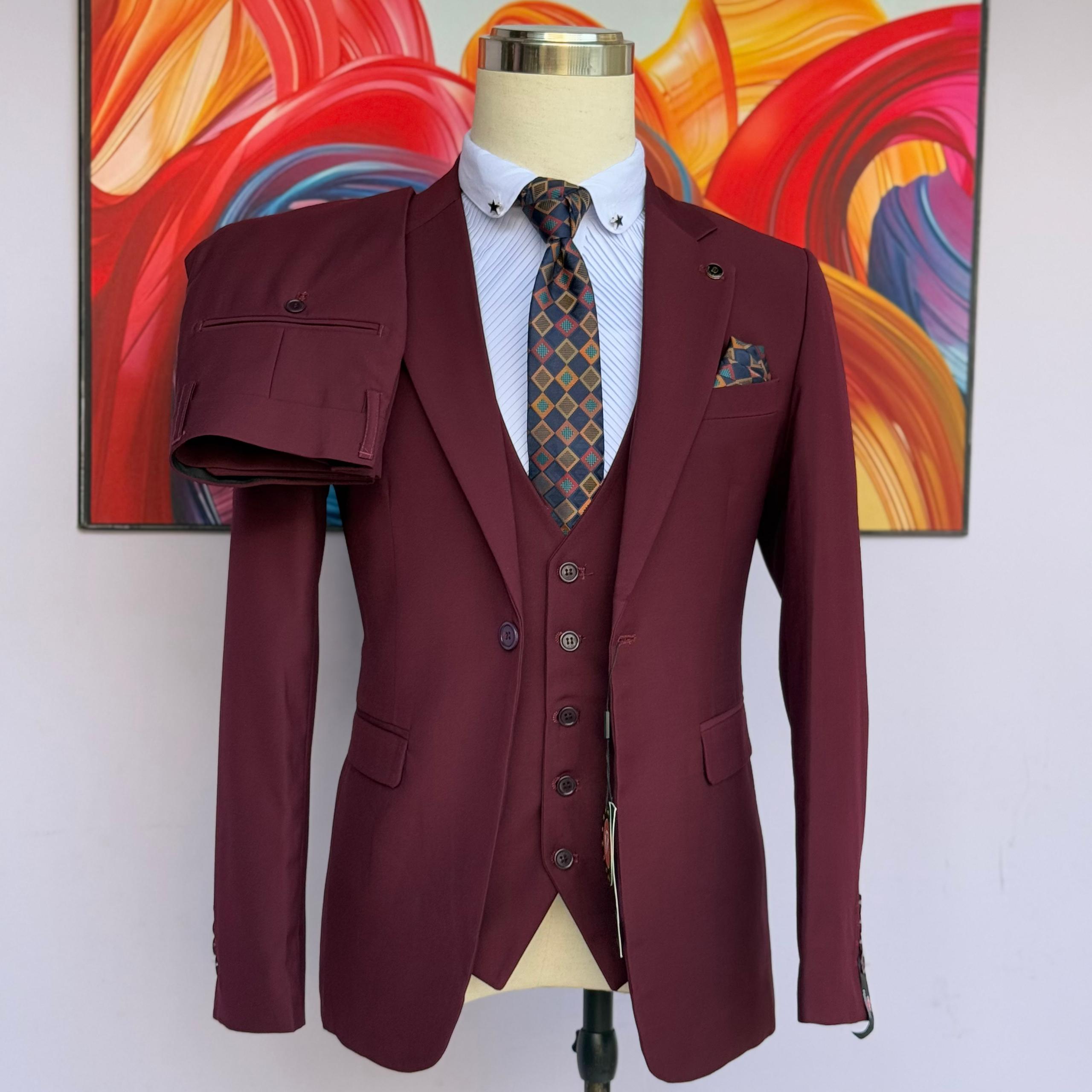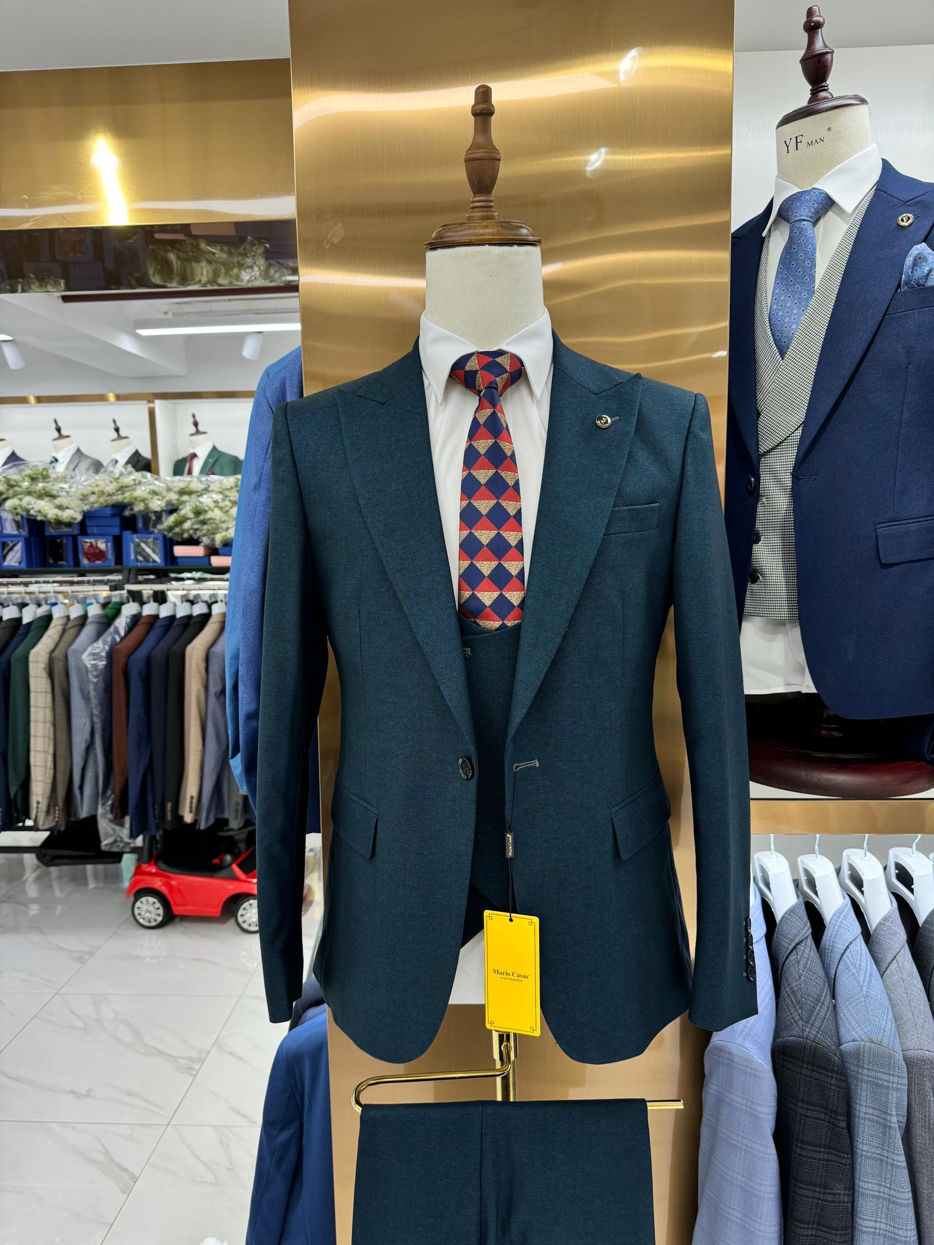 Redefine your style with this refined three-piece suit. This model stands out with its subtle blue checkered pattern, offering a look that is both professional and sharp.