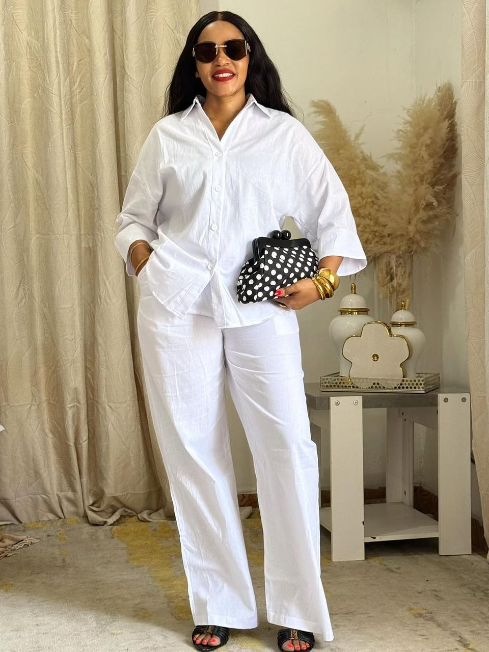 Embrace effortless elegance with this matching white linen set, your new go-to for sunny days and tropical getaways.