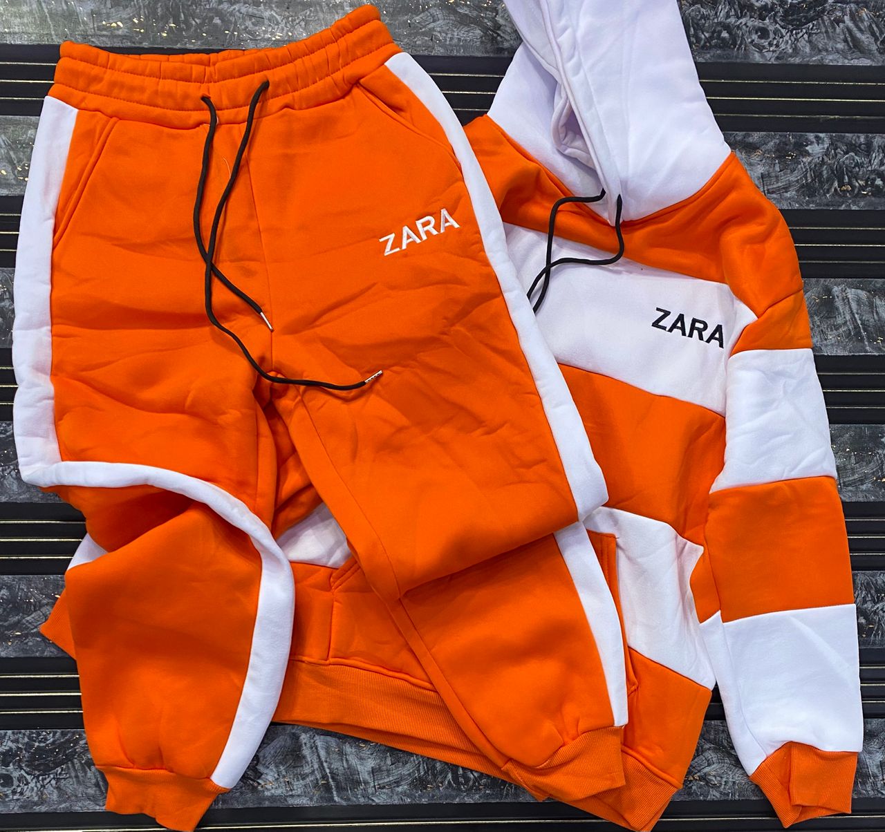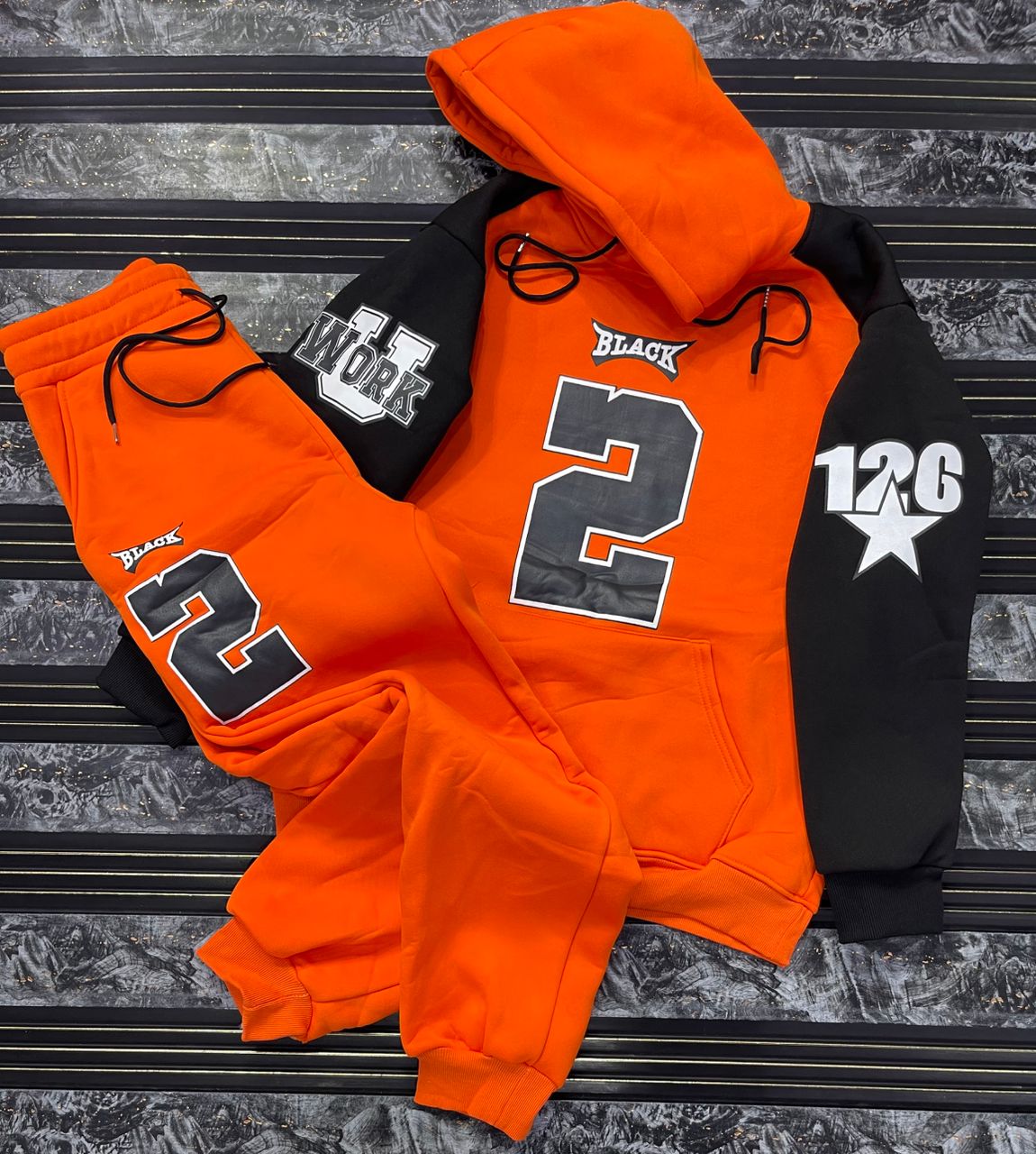 "Black 2" Streetwear Tracksuit – Vibrant Orange & Black Two-Tone Set