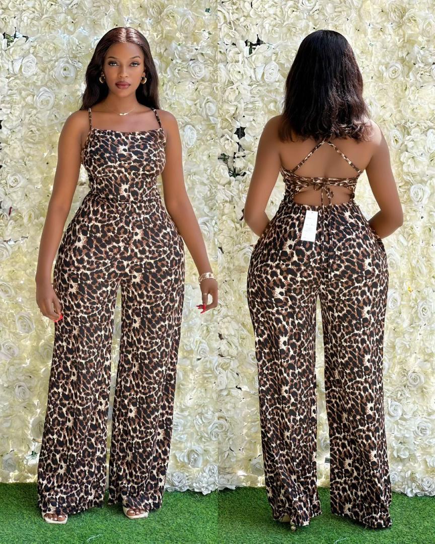 Leopard Print Open Back Jumpsuit – Wide Leg Silhouette