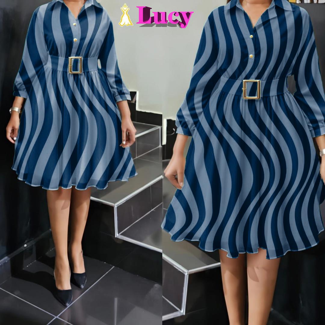 Wavy Striped Flare Skater Dress – Elegant & Chic Style