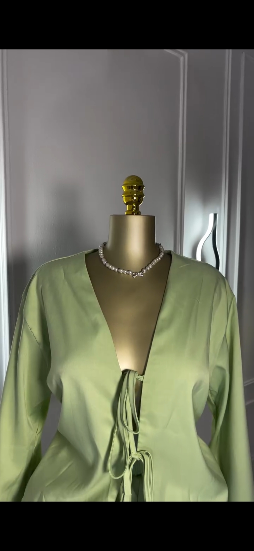 2-Piece Sage Green Co-ord Set – Tie-Front Long Sleeve Top & Shorts