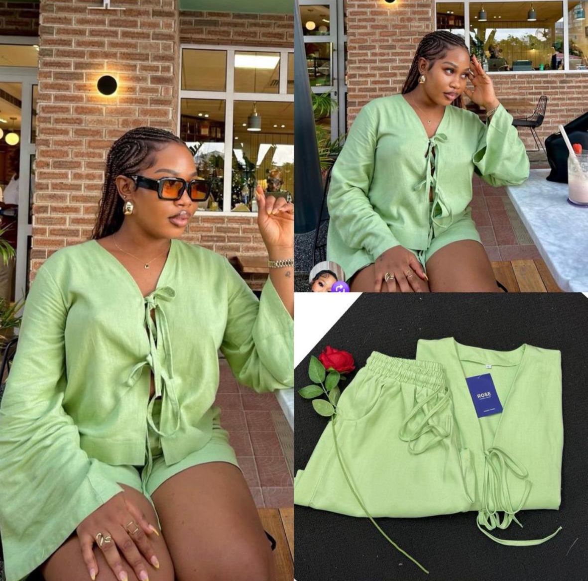 Fresh, feminine, and effortlessly chic. This sage green coordinated set is the ultimate statement piece for your next outing, offering a polished look with a relaxed feel.