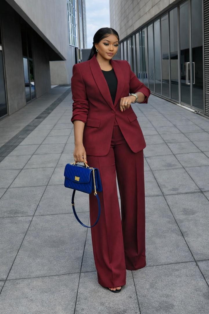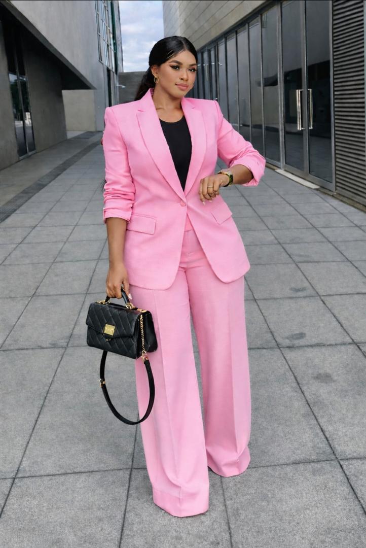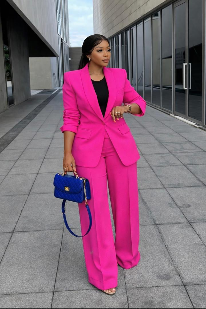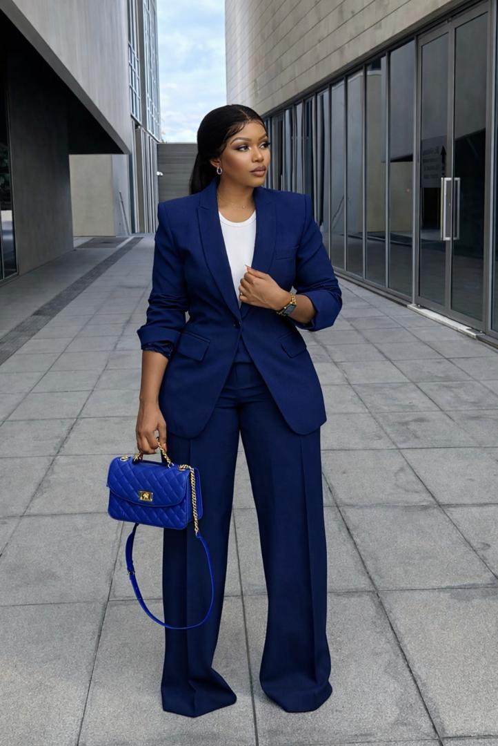 Make a bold statement with this pristine white two-piece suit. Designed for the modern woman, this set perfectly balances professional sophistication with high-fashion flair.