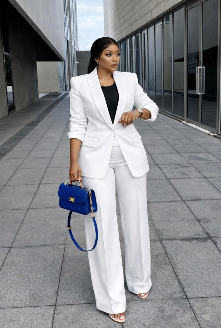 Radiant White Pantsuit Set – Elegant Business & Formal Wear