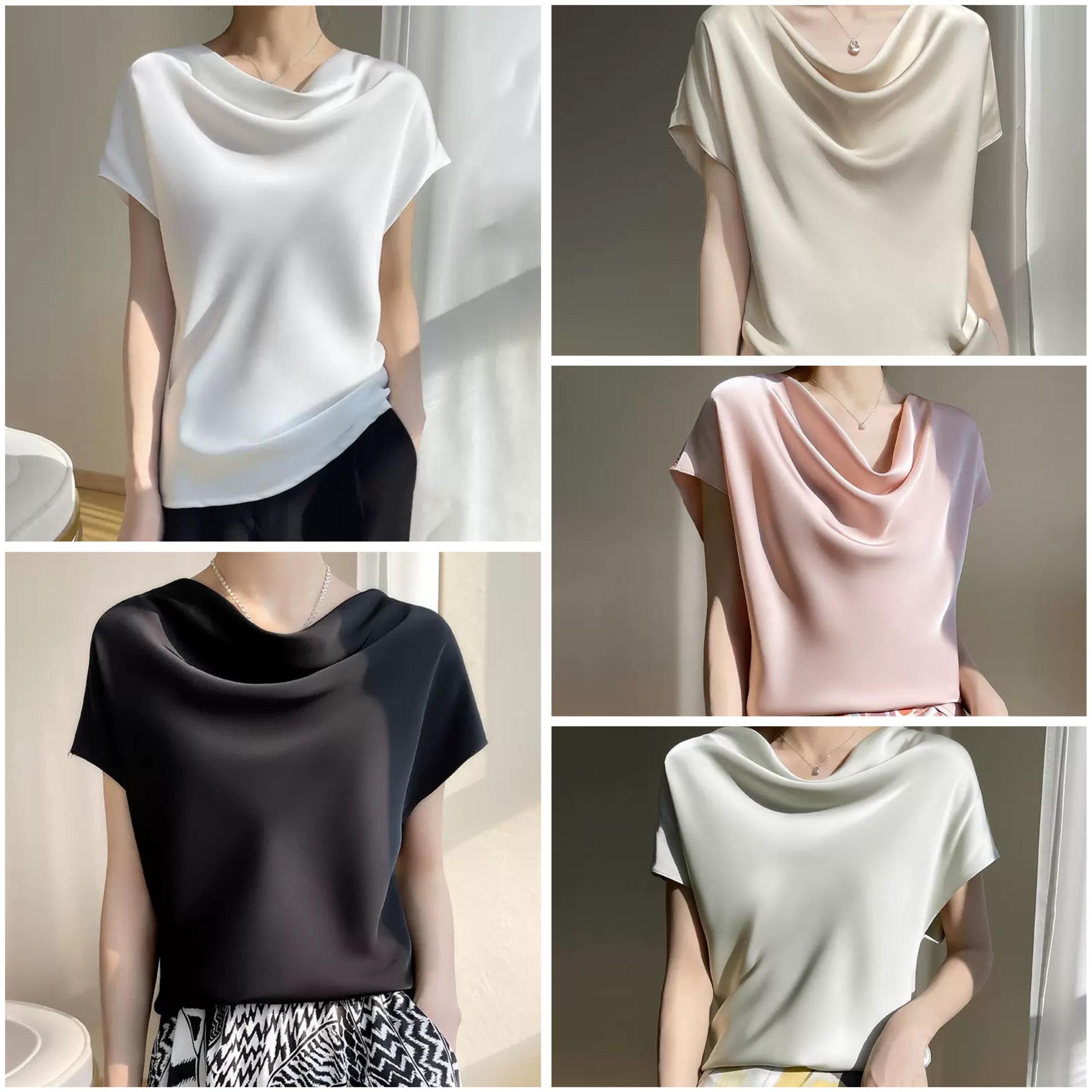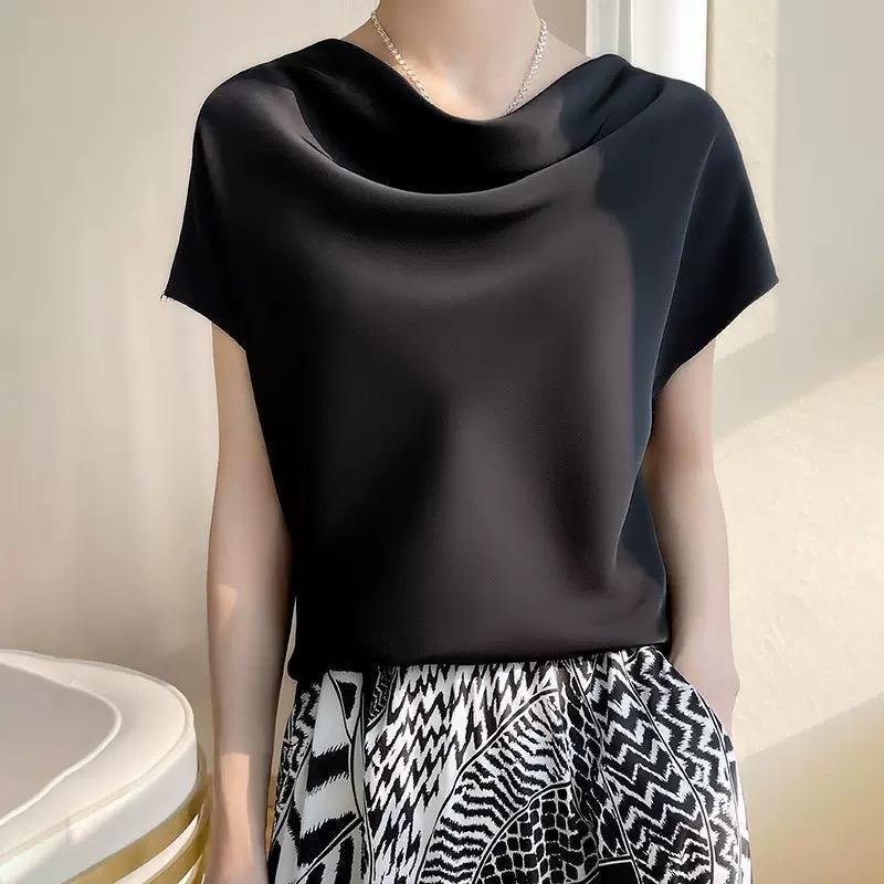 Elevate your everyday style with this silky fluid top. Featuring a sophisticated draped neckline and a clean aesthetic, it’s a versatile staple designed for the modern woman.