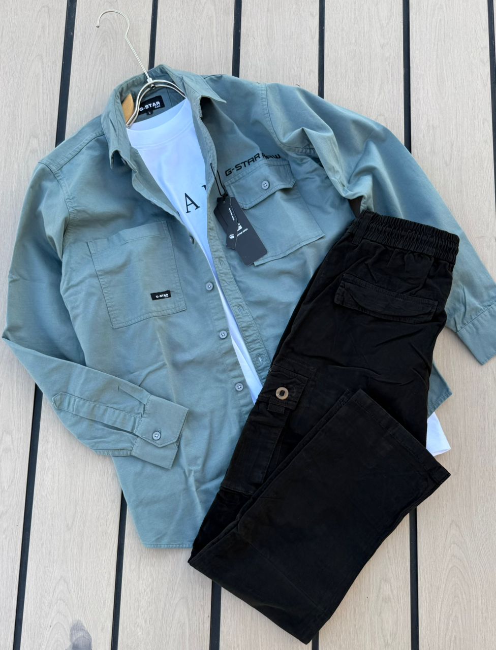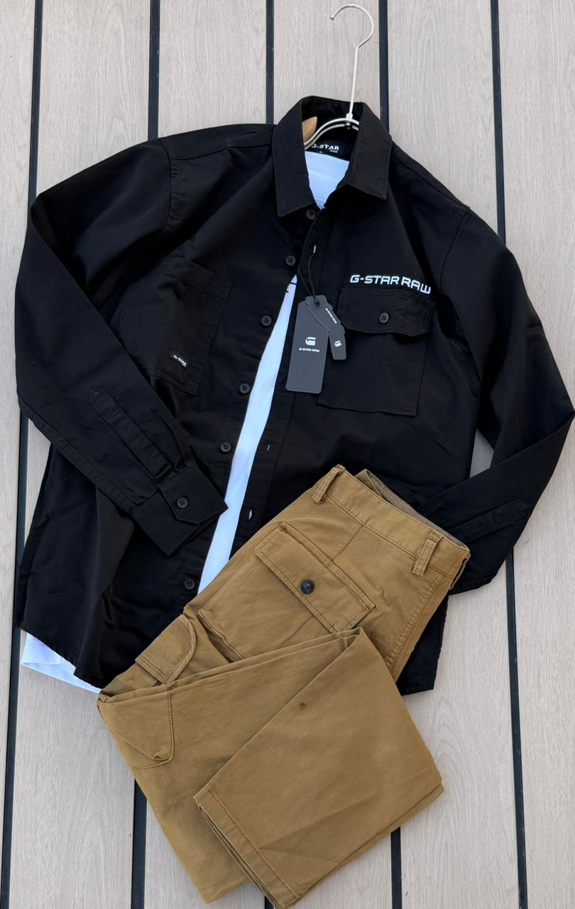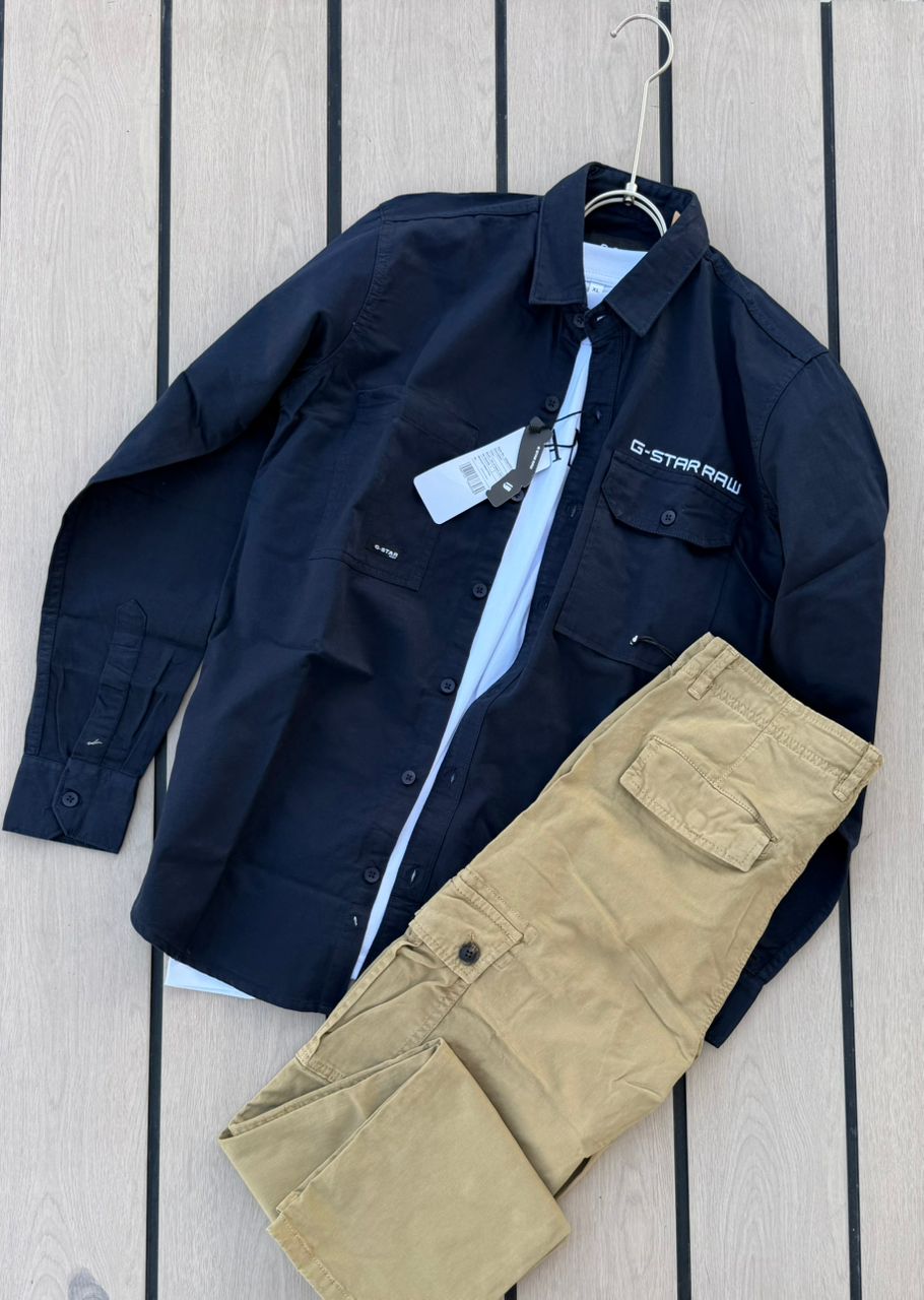 G-Star RAW Set – Sky Blue Utility Shirt & Black Cargo Pants