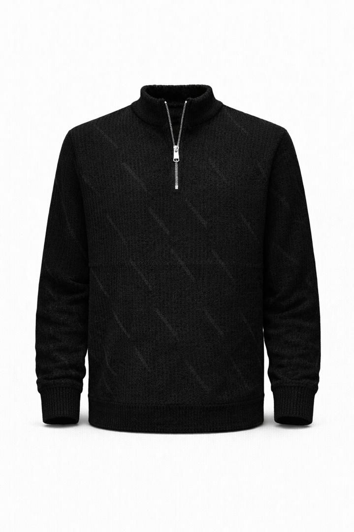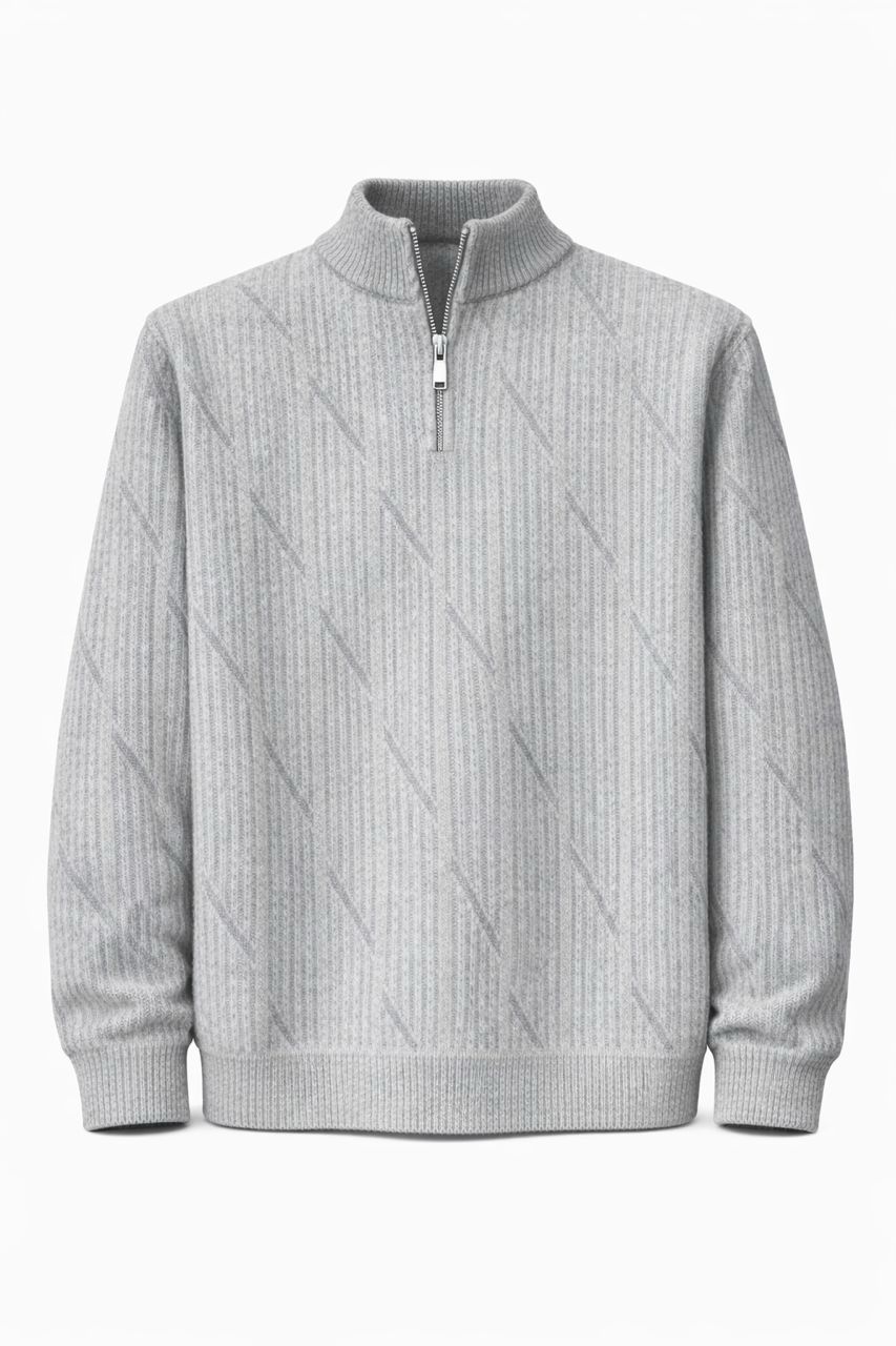 Elevate your everyday style with this premium quarter-zip sweater. Featuring a sophisticated textured knit with a subtle diagonal pattern, this piece offers a modern twist on a timeless silhouette.