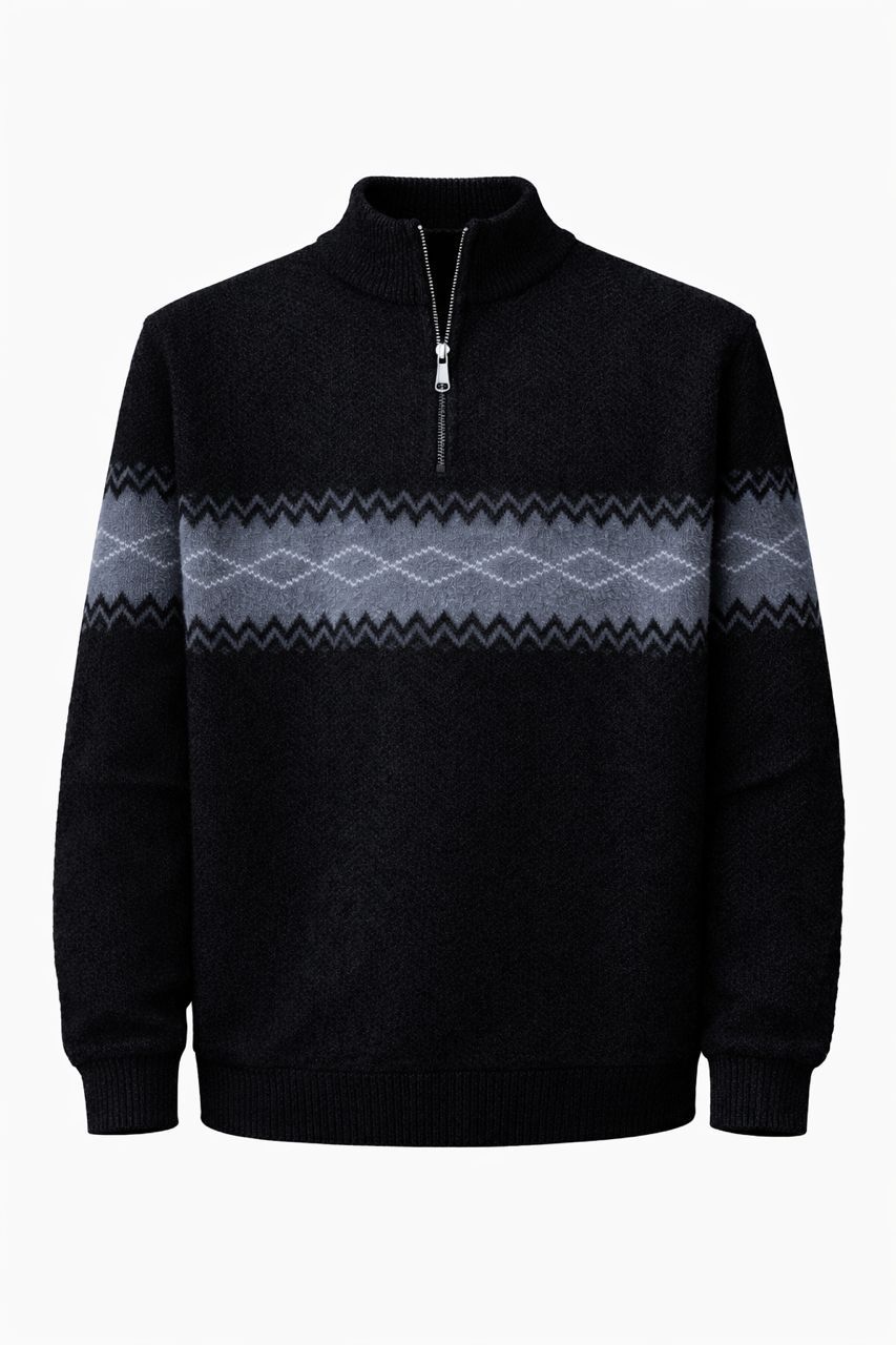 Men's Black Quarter-Zip Knit Sweater – Premium Style
