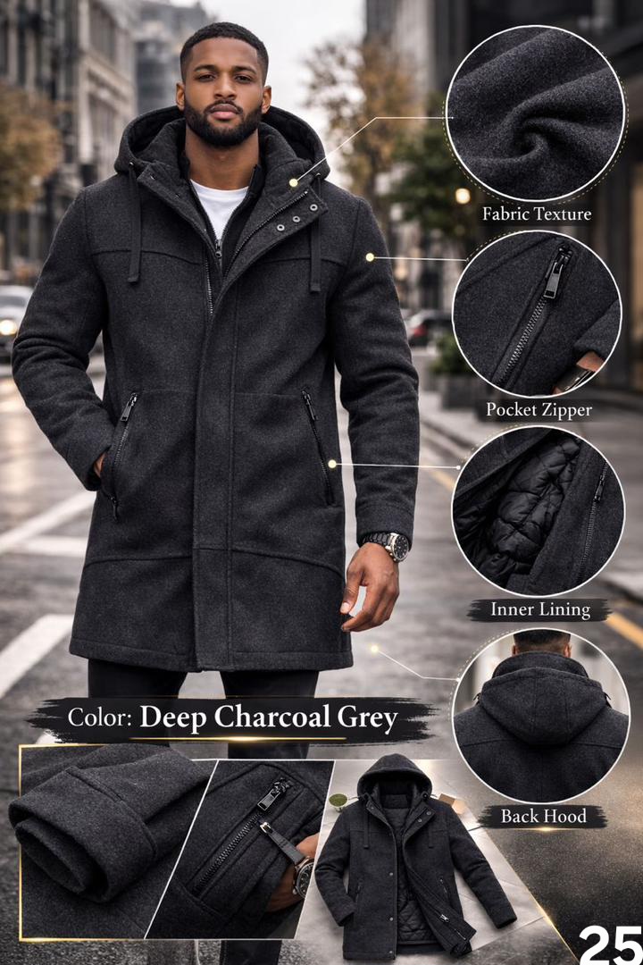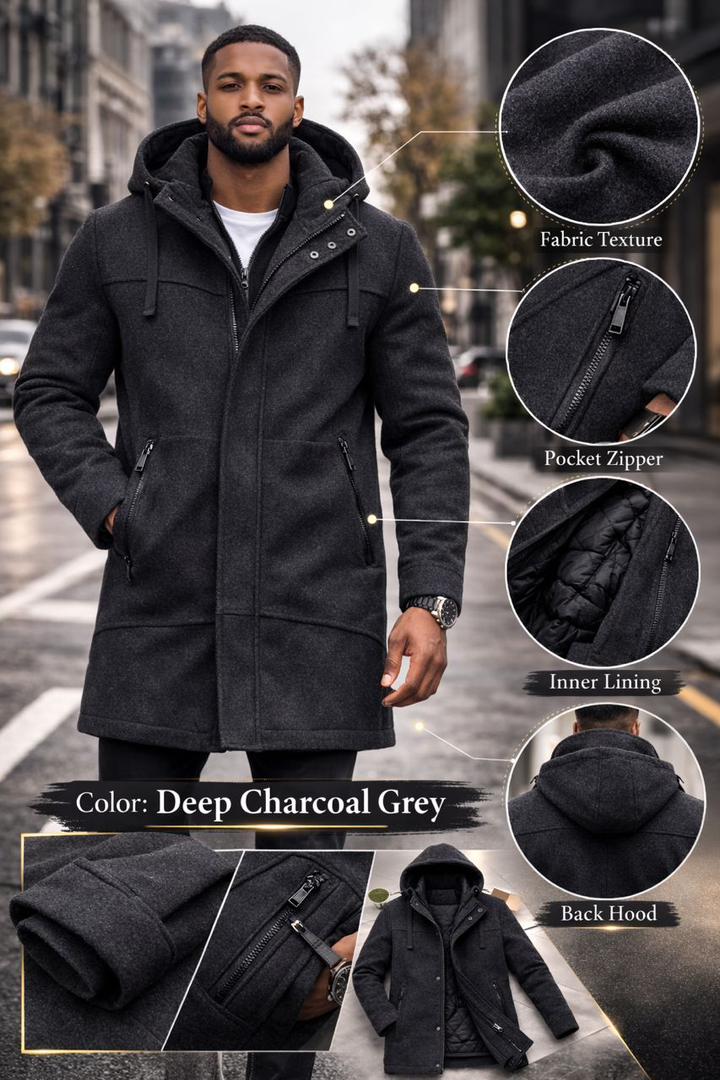 Men's Premium Hooded Parka Coat – Deep Charcoal Grey – Urban Winter Style