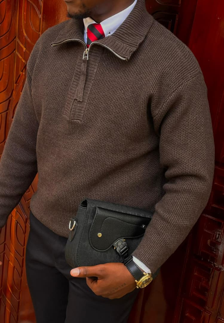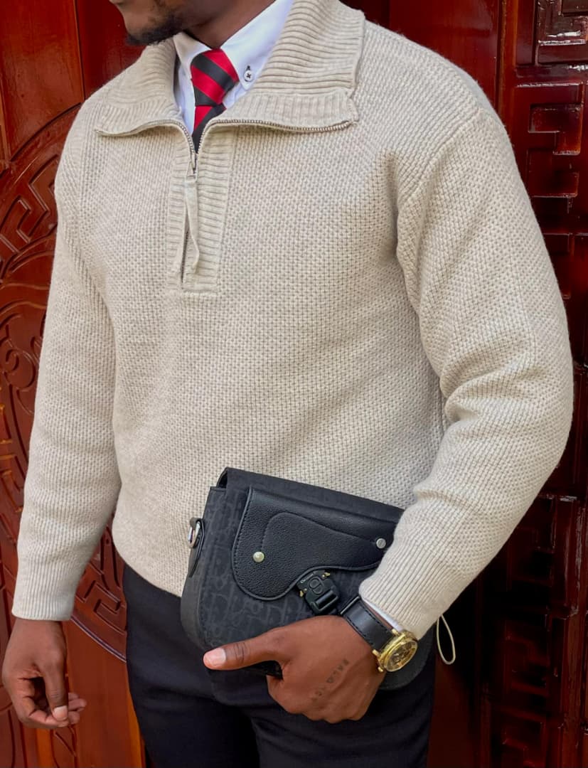 Elevate your wardrobe with this heavy-knit quarter-zip sweater. A perfect blend of classic comfort and modern sophistication, designed for a sharp, versatile look.