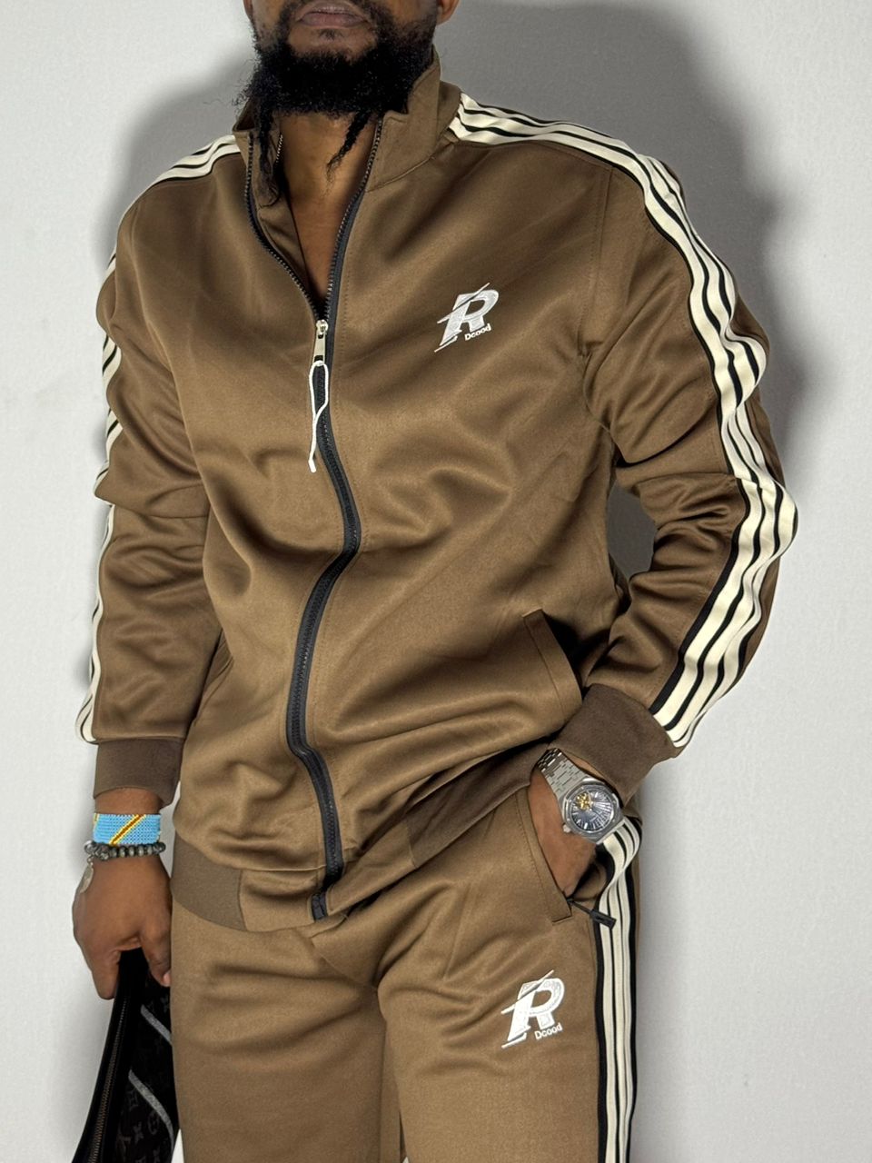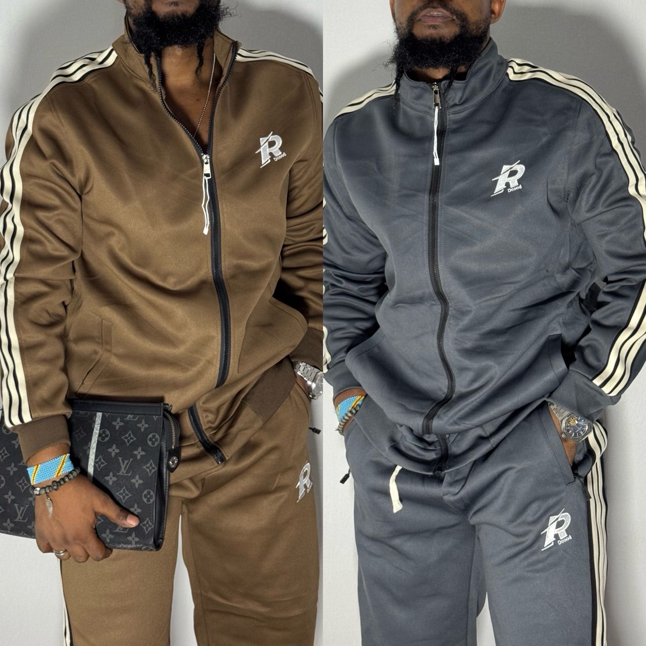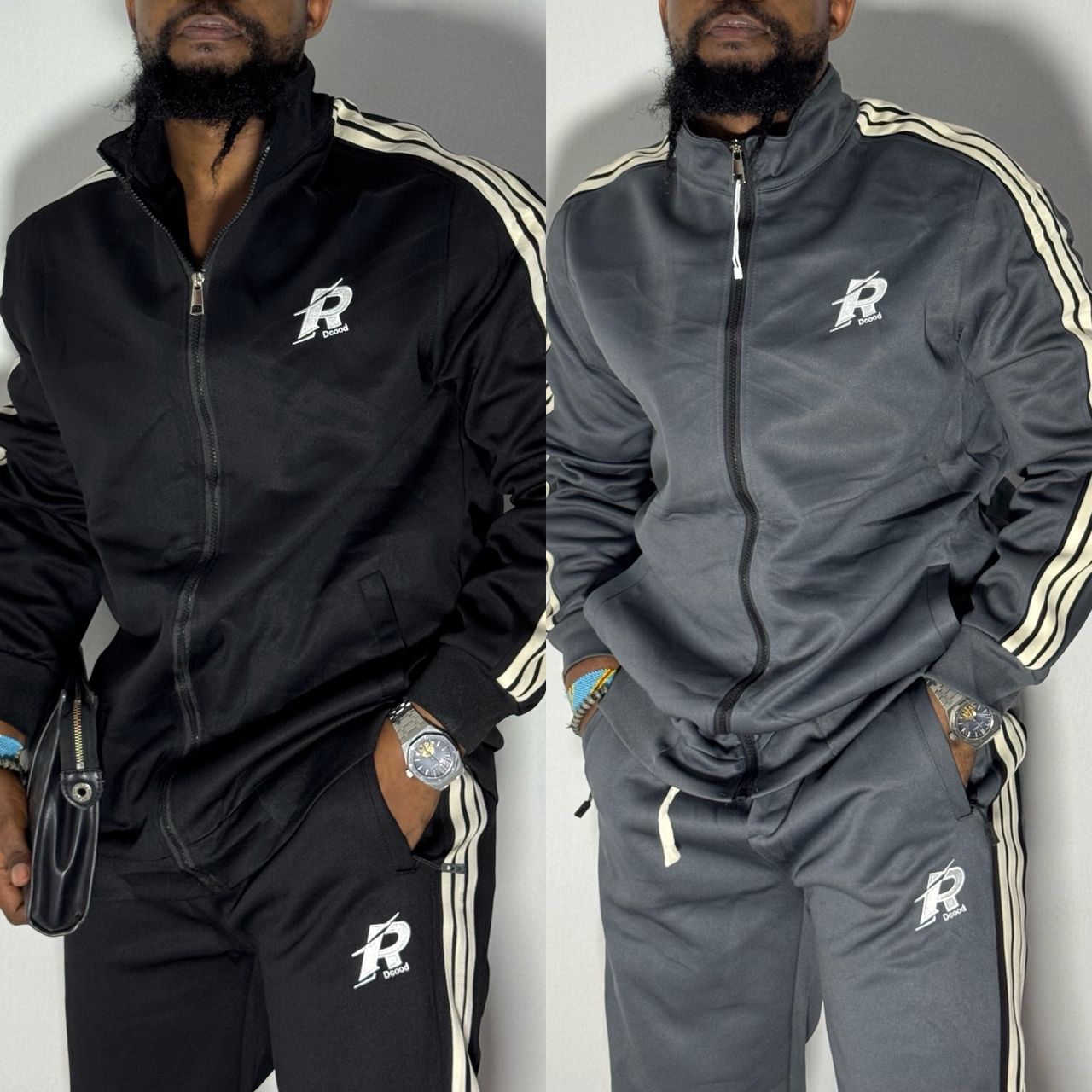 Premium "Dccod" Tracksuit Set – Anthracite Grey & Cream