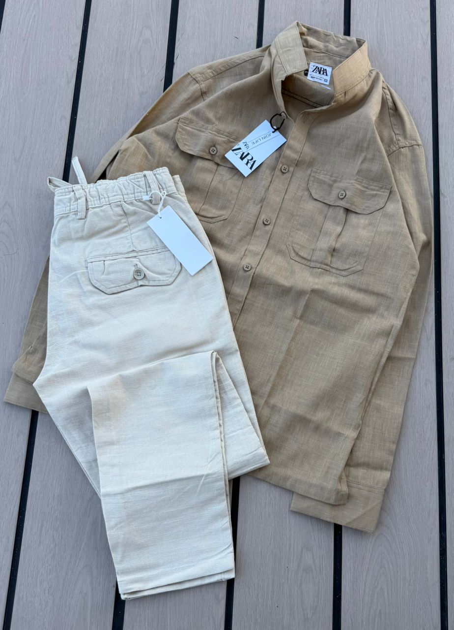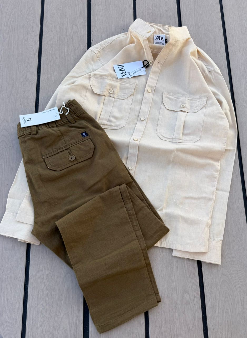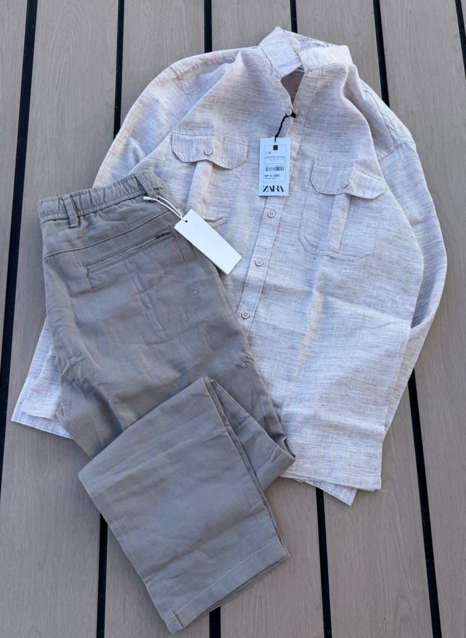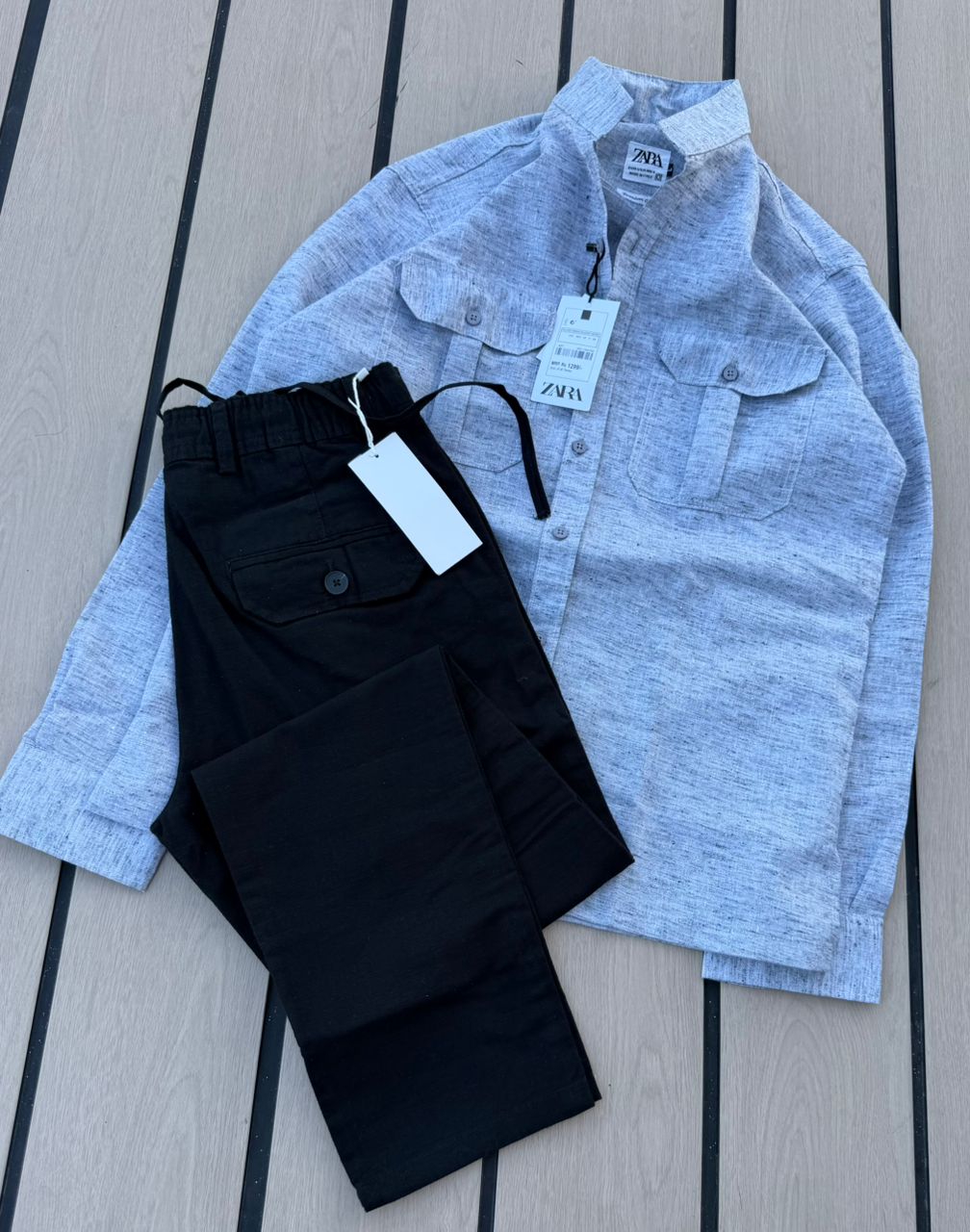 Casual 2-Piece Set – Grey Zara Shirt & Black Cargo Pants