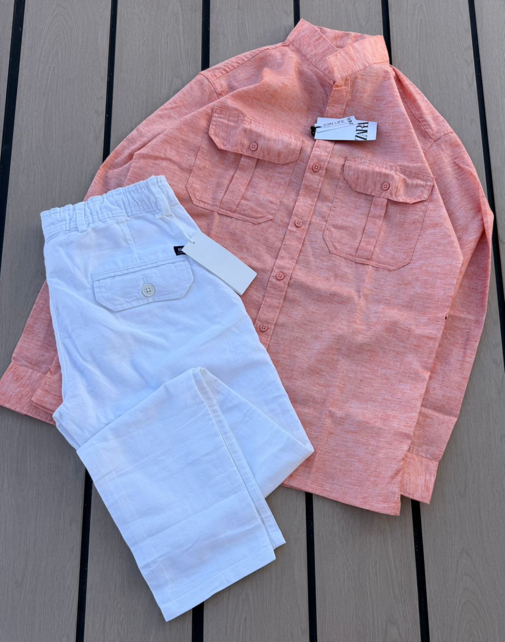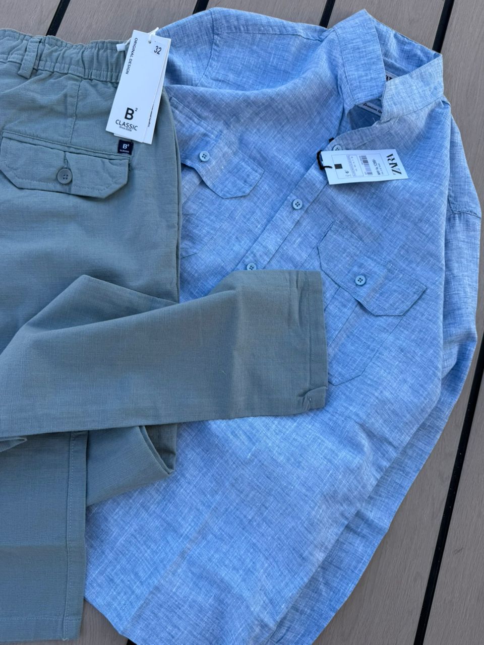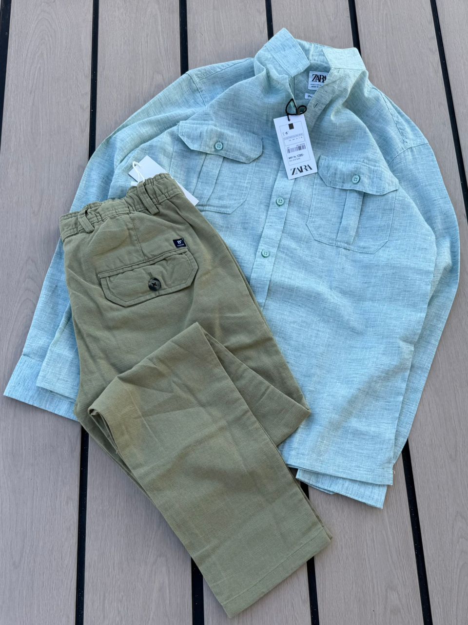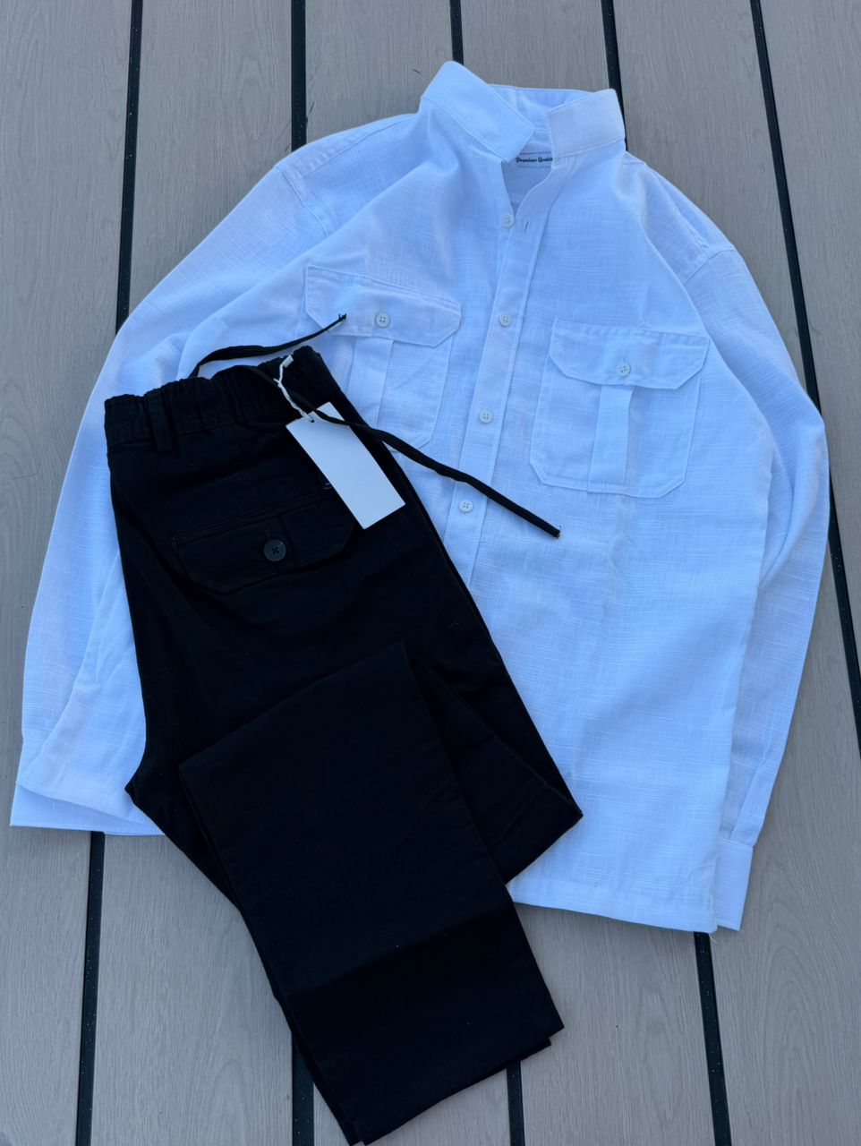 Casual 2-Piece Set – Grey Zara Shirt & Black Cargo Pants
