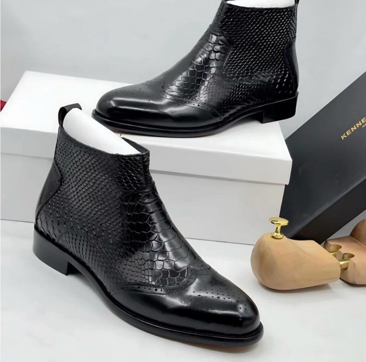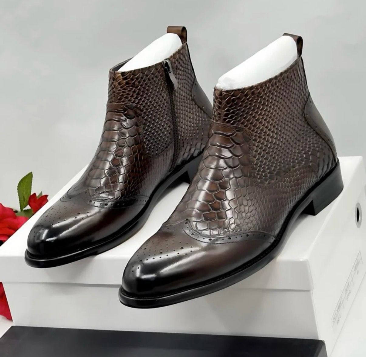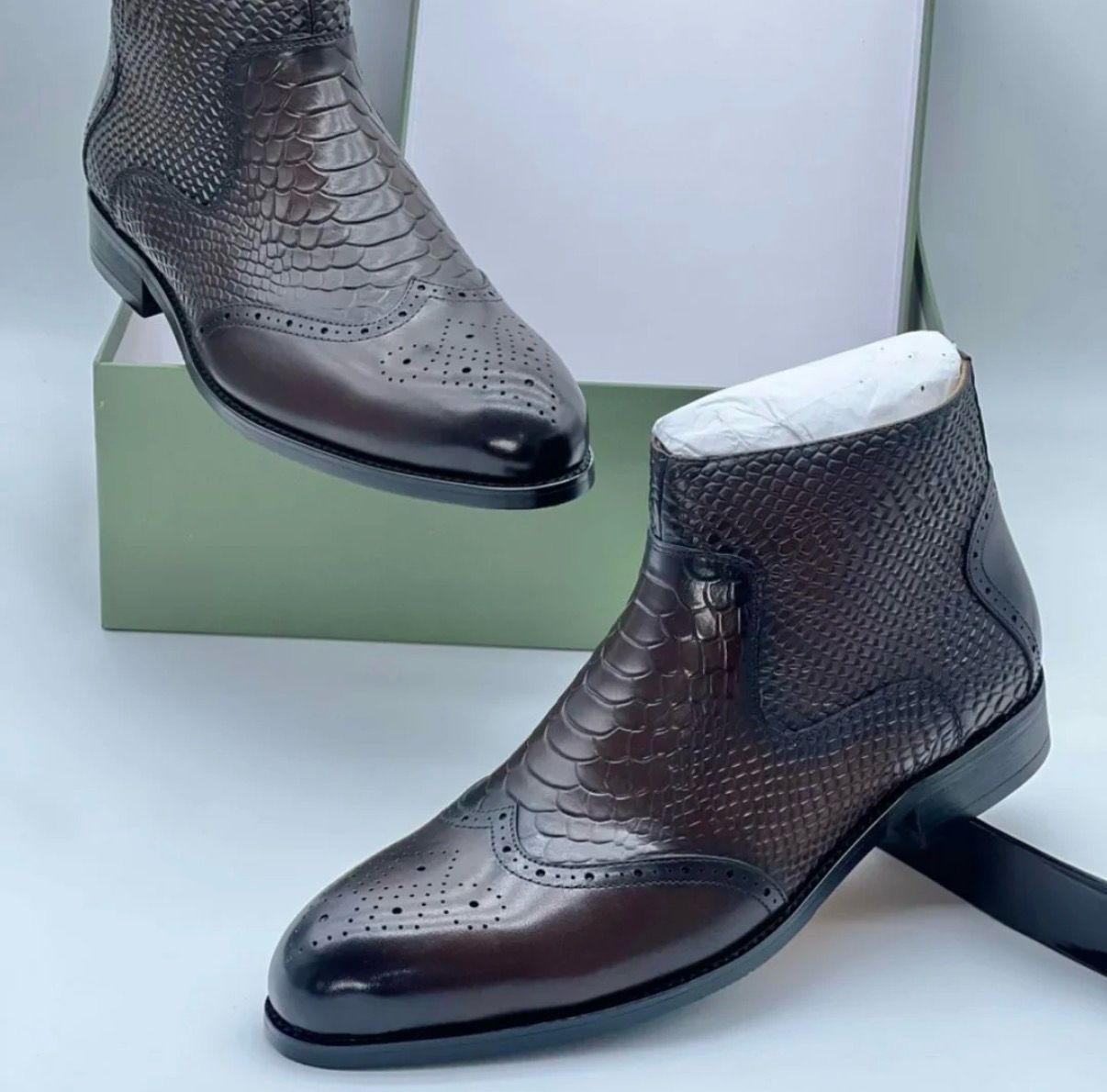 Elevate your footwear game with these sophisticated high-end ankle boots. A perfect blend of classic craftsmanship and exotic textures, designed for the modern gentleman.