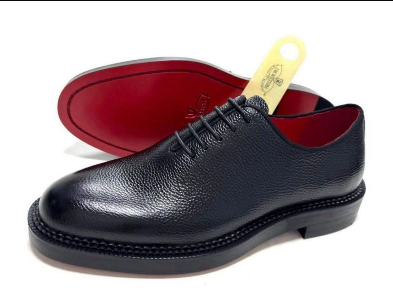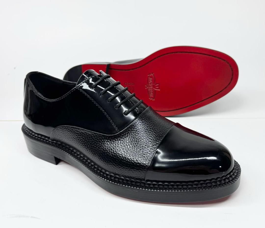 Black textured leather Oxford shoes – Red sole