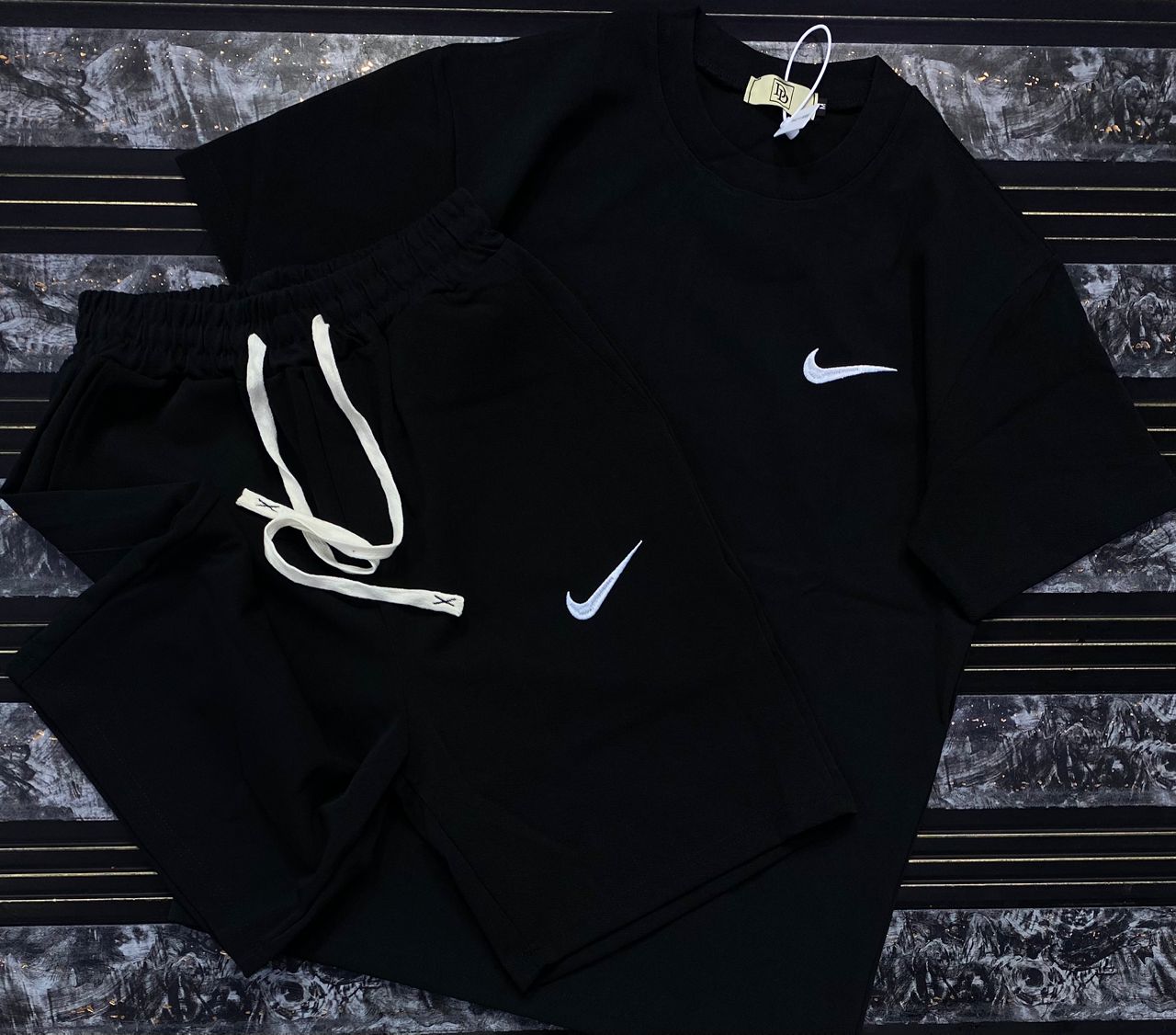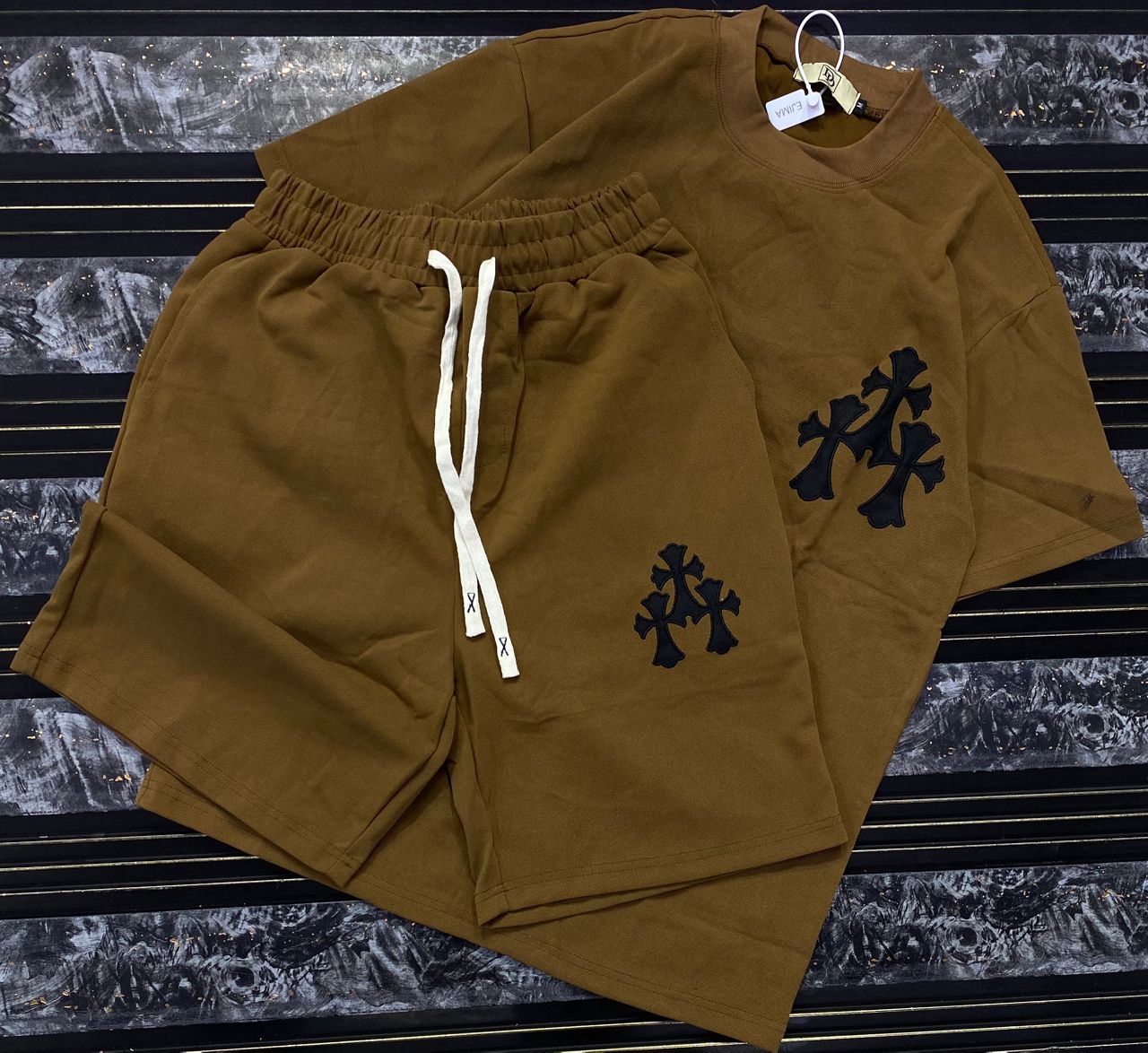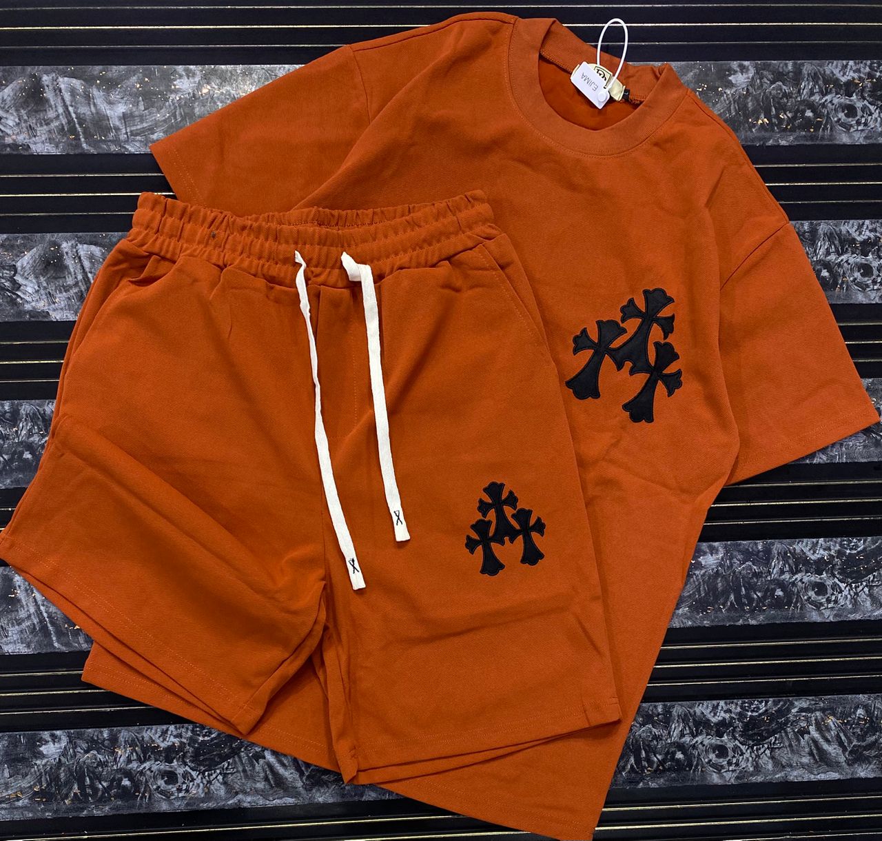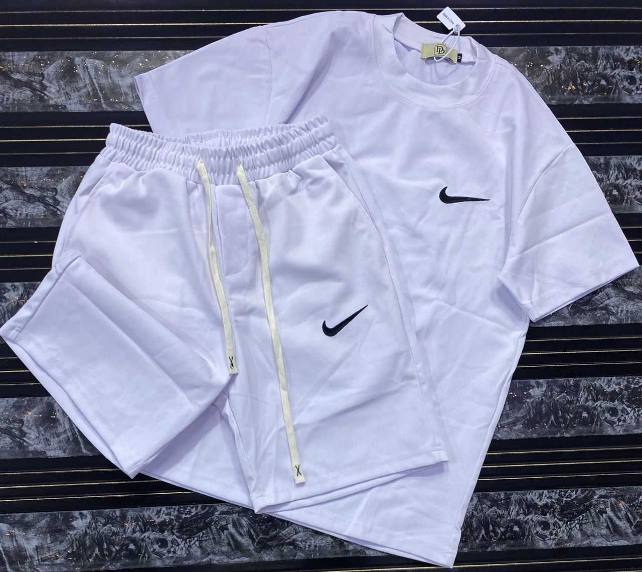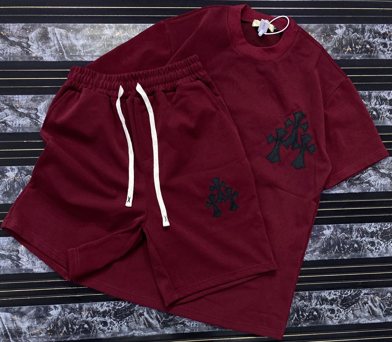 “Cross Graphics” Shorts and T-shirt Set – White & Black