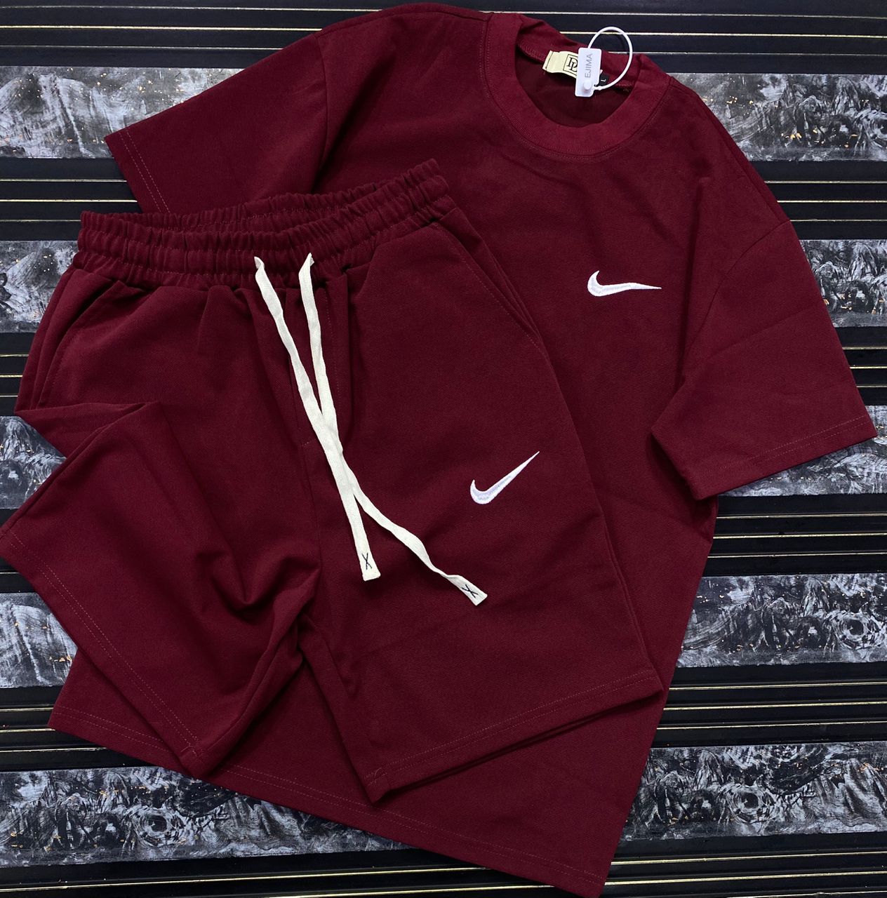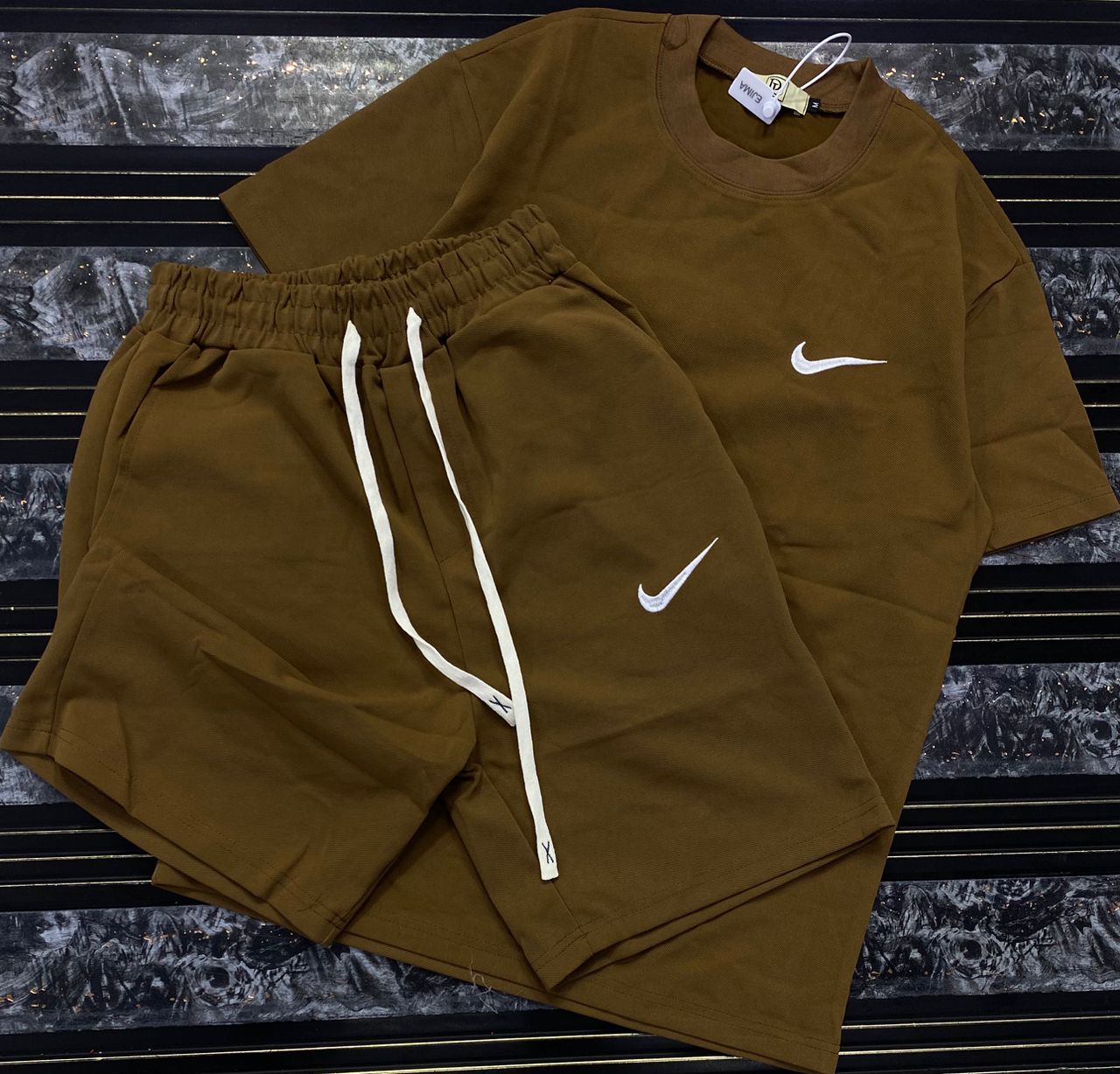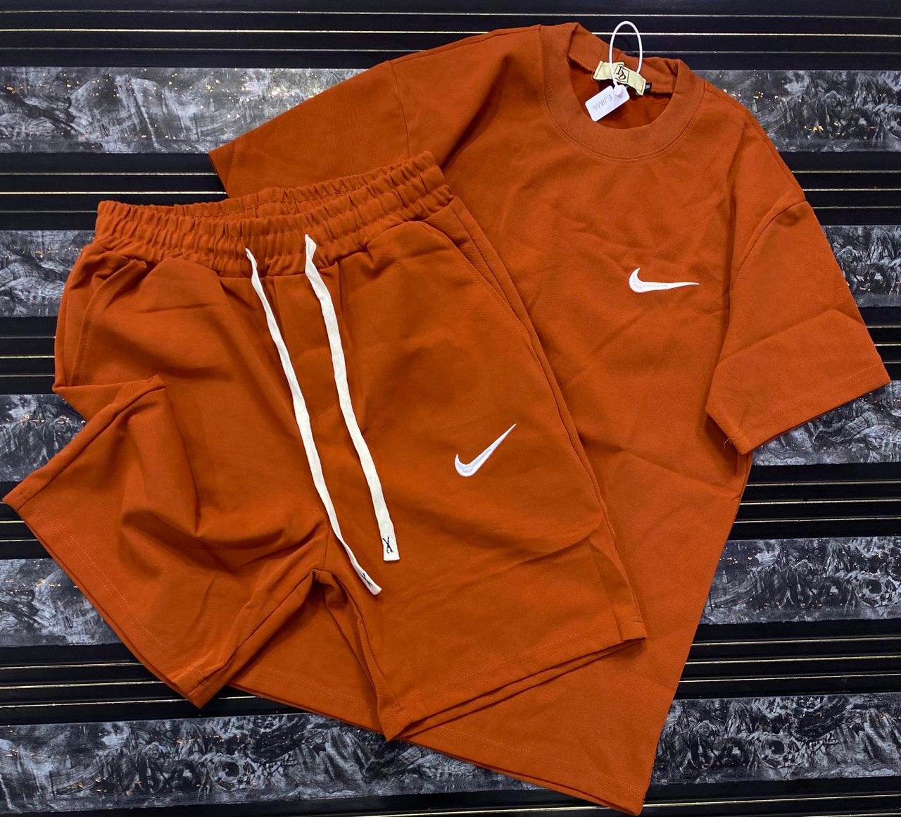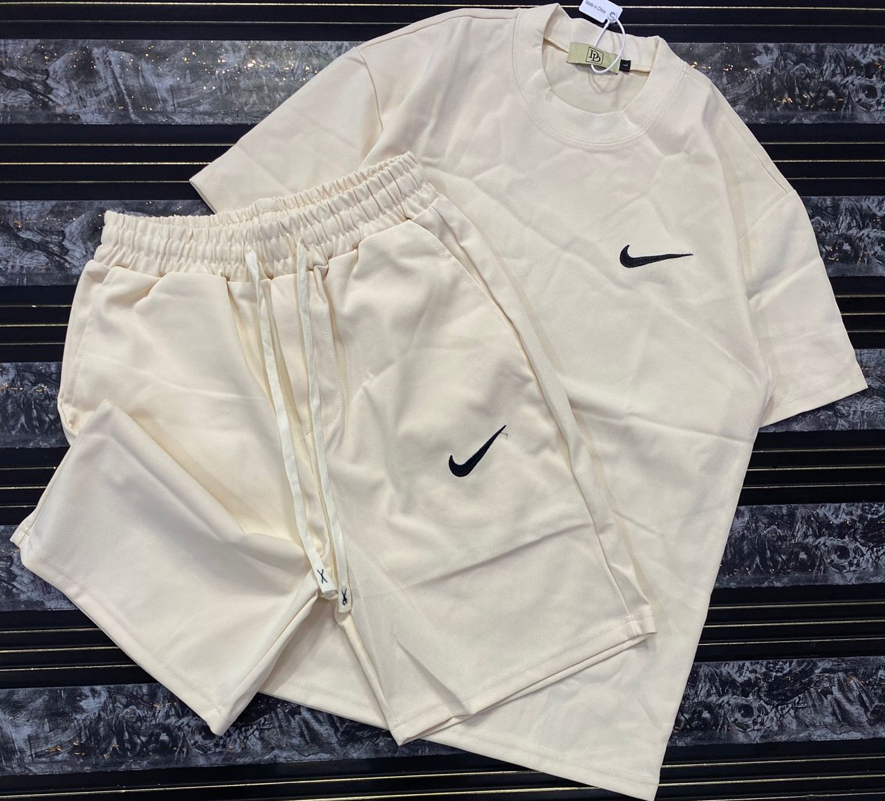 “Cross Graphics” Shorts and T-shirt Set – White & Black