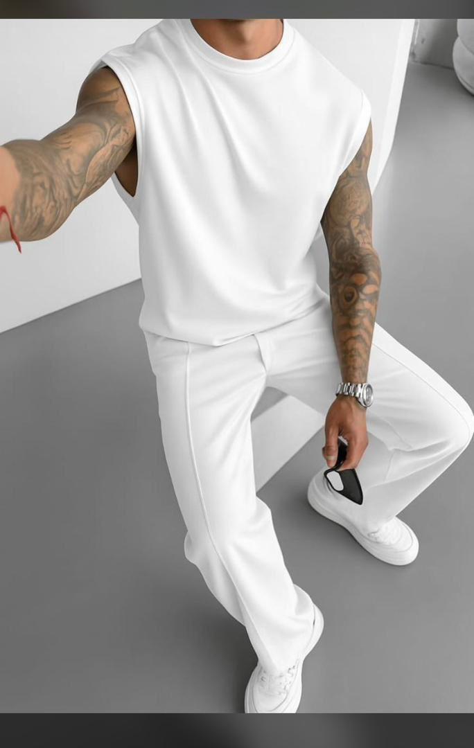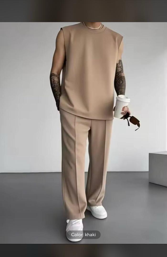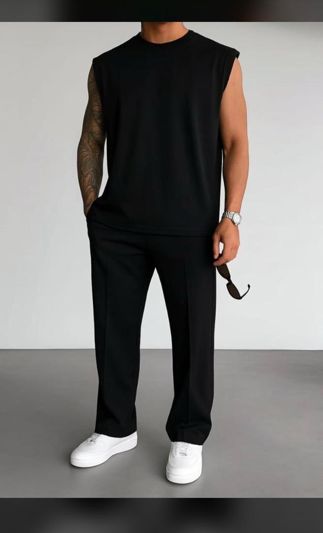 Men's Minimalist 2-Piece Set: Oversized Tank Top & Wide-Leg Trousers