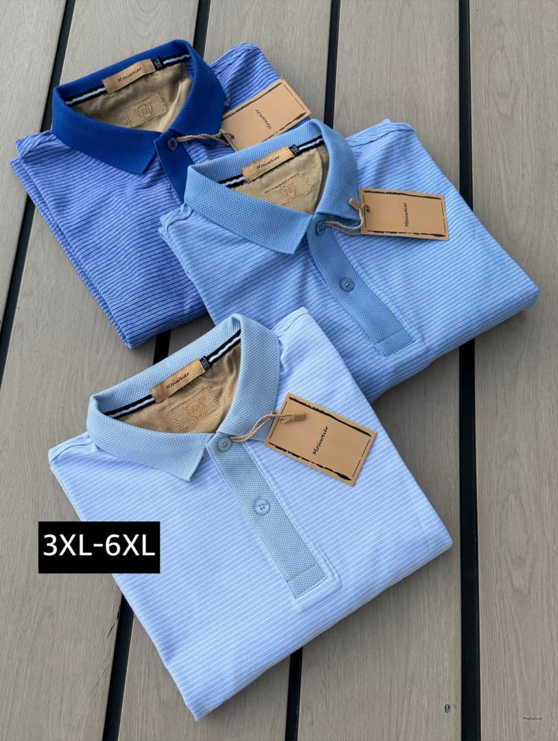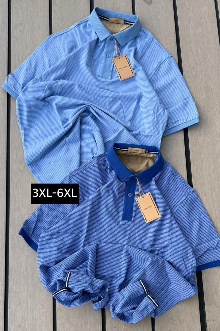 Men's Fine Striped Polo Shirt - Comfort Fit (Sizes 3XL to 6XL)