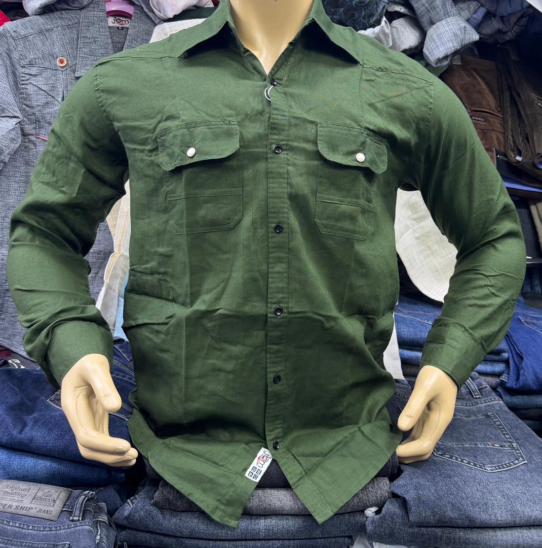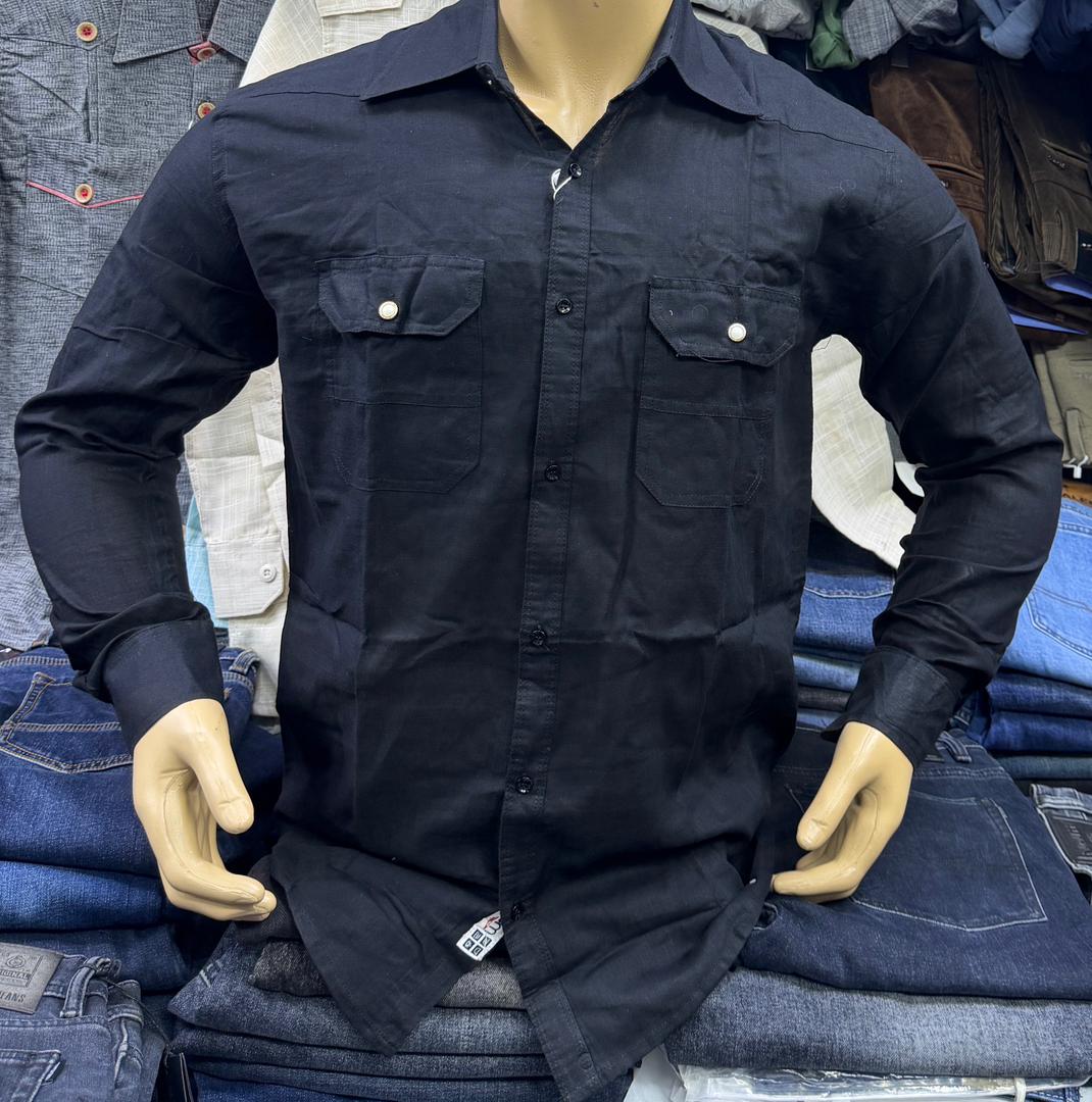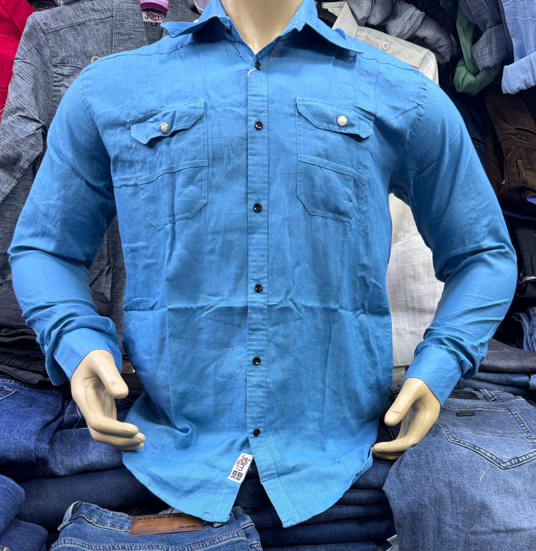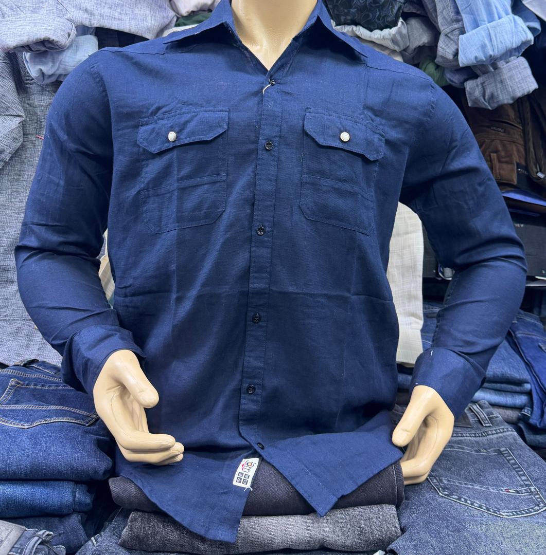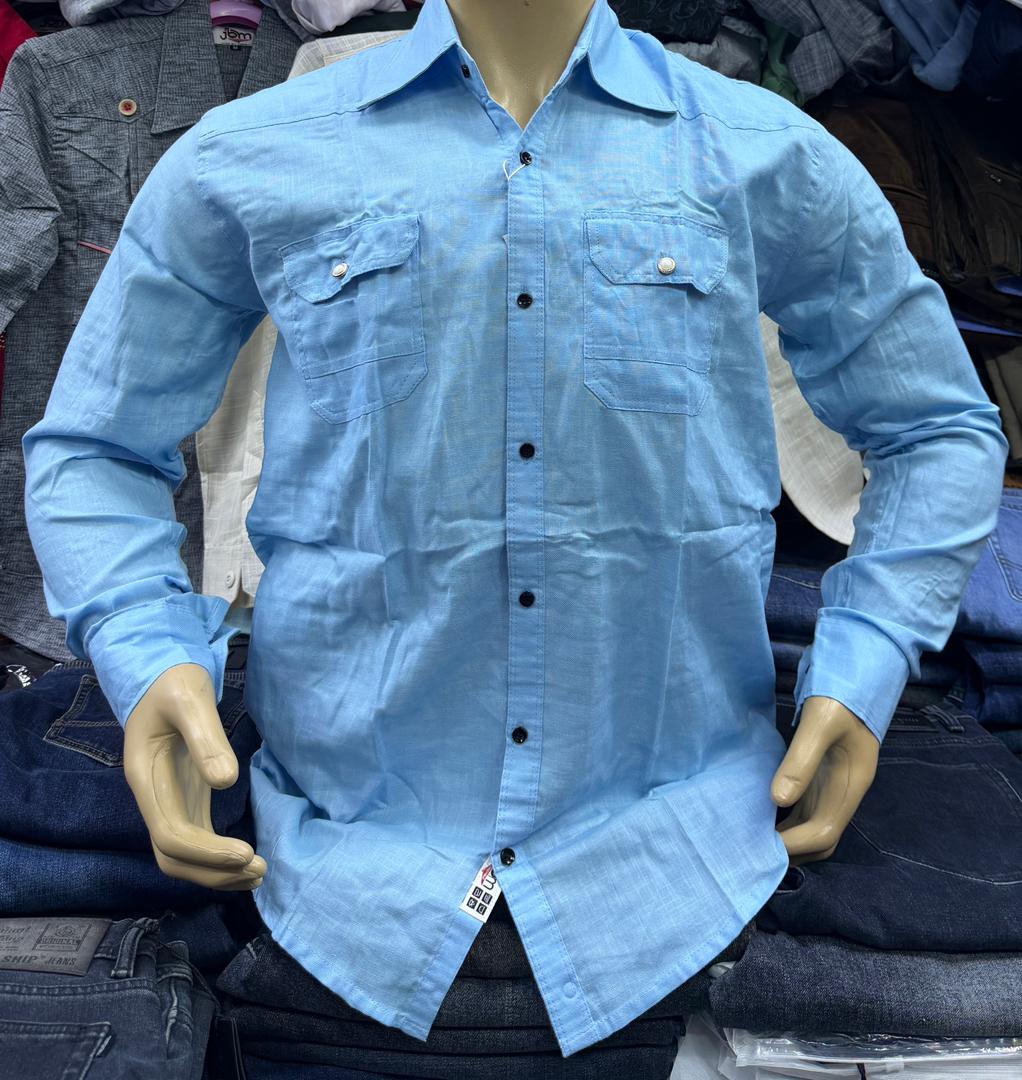 Casual Light Grey Linen Shirt – Safari Style with Double Pockets