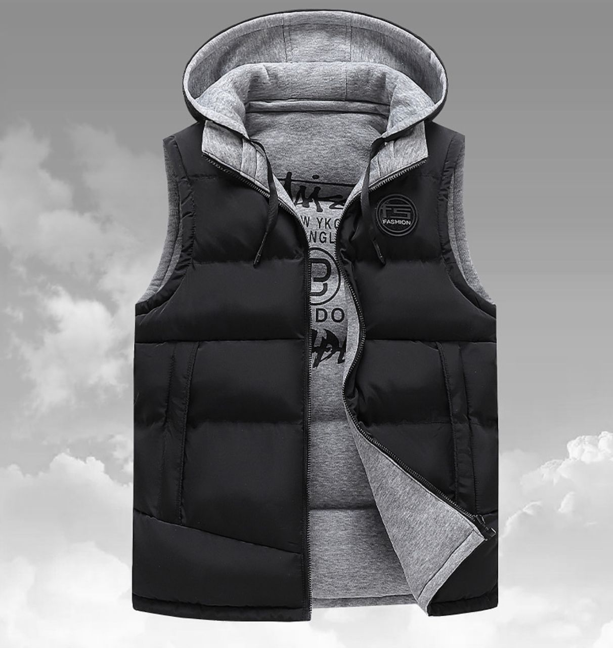 Padded Sleeveless Vest with Removable Hood – Casual Urban Style