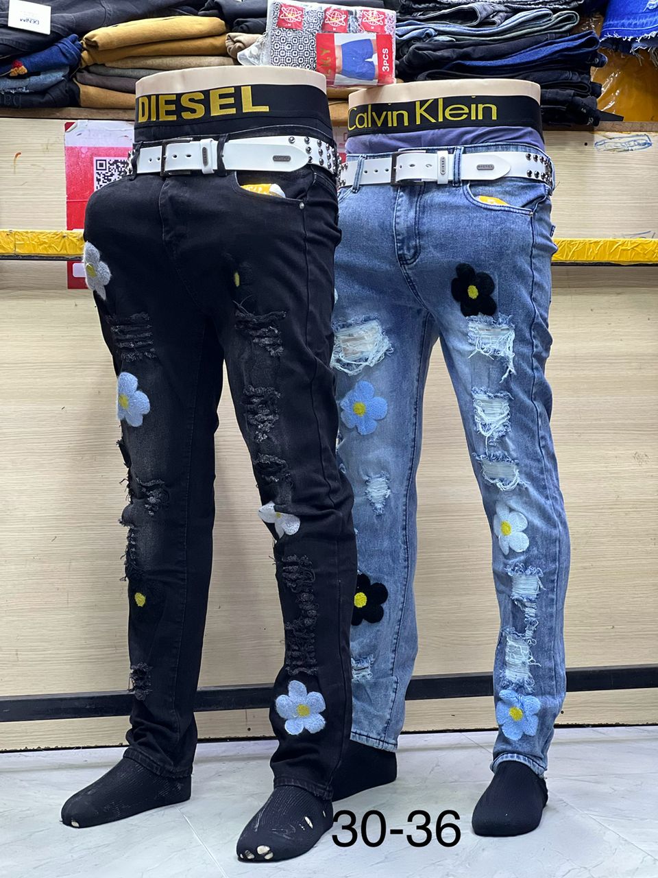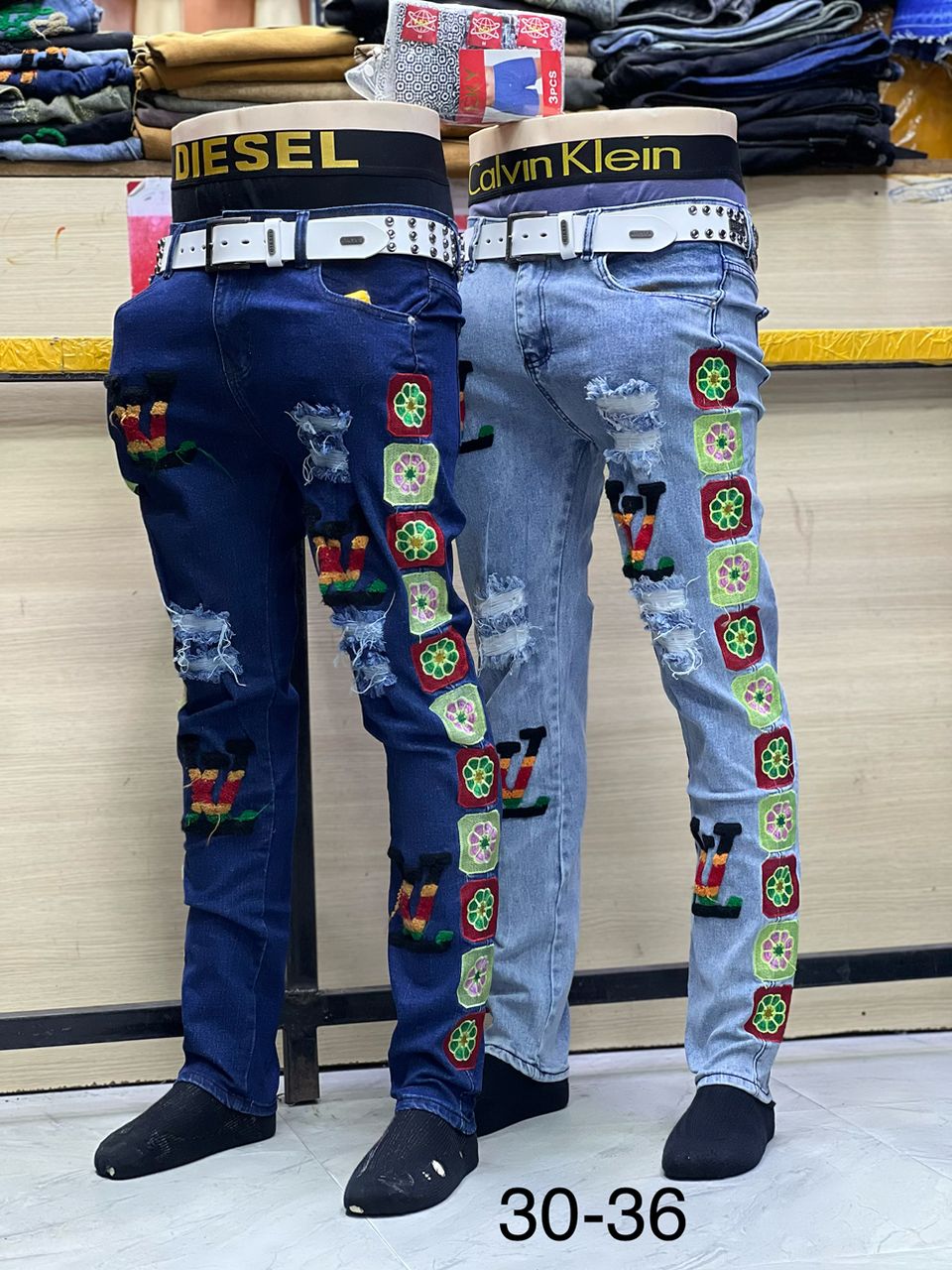 Embrace a bold, urban look with these uniquely styled jeans. Designed for those who like to stand out, this style combines modern finishes with colorful, handcrafted embroidery.
