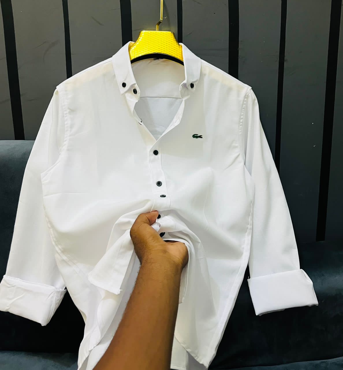 Elevate your wardrobe with this timeless Lacoste button-down shirt. Crafted from high-quality Oxford fabric, it offers the perfect blend of comfort and sophistication.