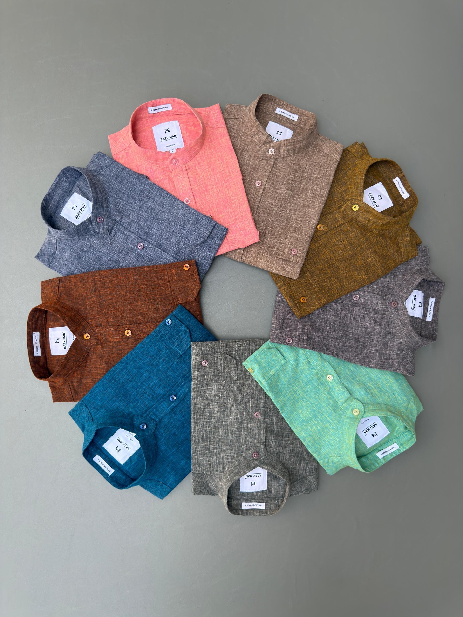 Elevate your everyday style with our premium Mandarin collar shirts. Crafted from a breathable, linen-textured fabric, these shirts offer the perfect blend of comfort and sophistication for the modern man.