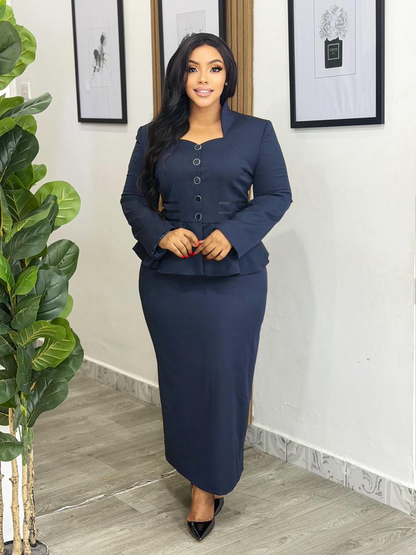Long Skirt: Matching pencil skirt with a straight, fitted cut for a streamlined silhouette.