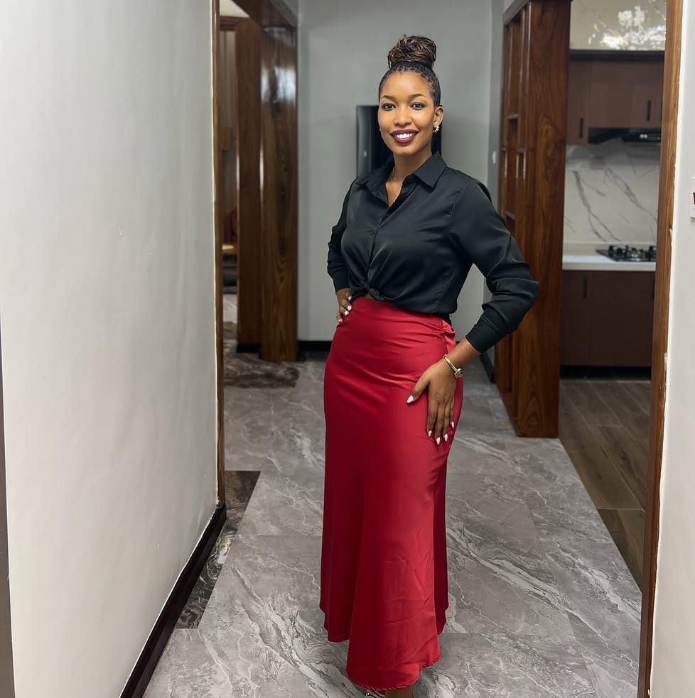 Chic Outfit: Satin Tie Shirt & Red Mermaid Maxi Skirt