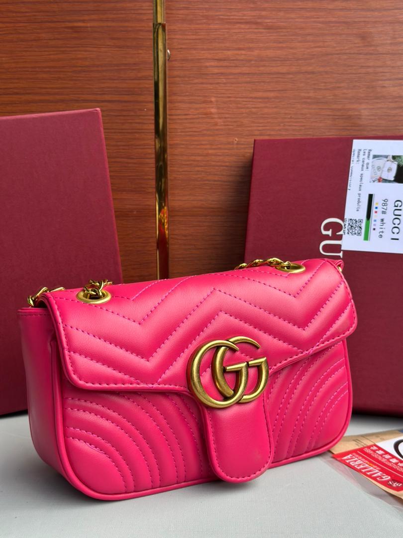 Add a touch of Italian elegance to your wardrobe with this stunning Gucci GG Marmont bag. Crafted from premium leather with a distinctive quilted chevron pattern, this style comes in a rich burgundy hue that suits all seasons.