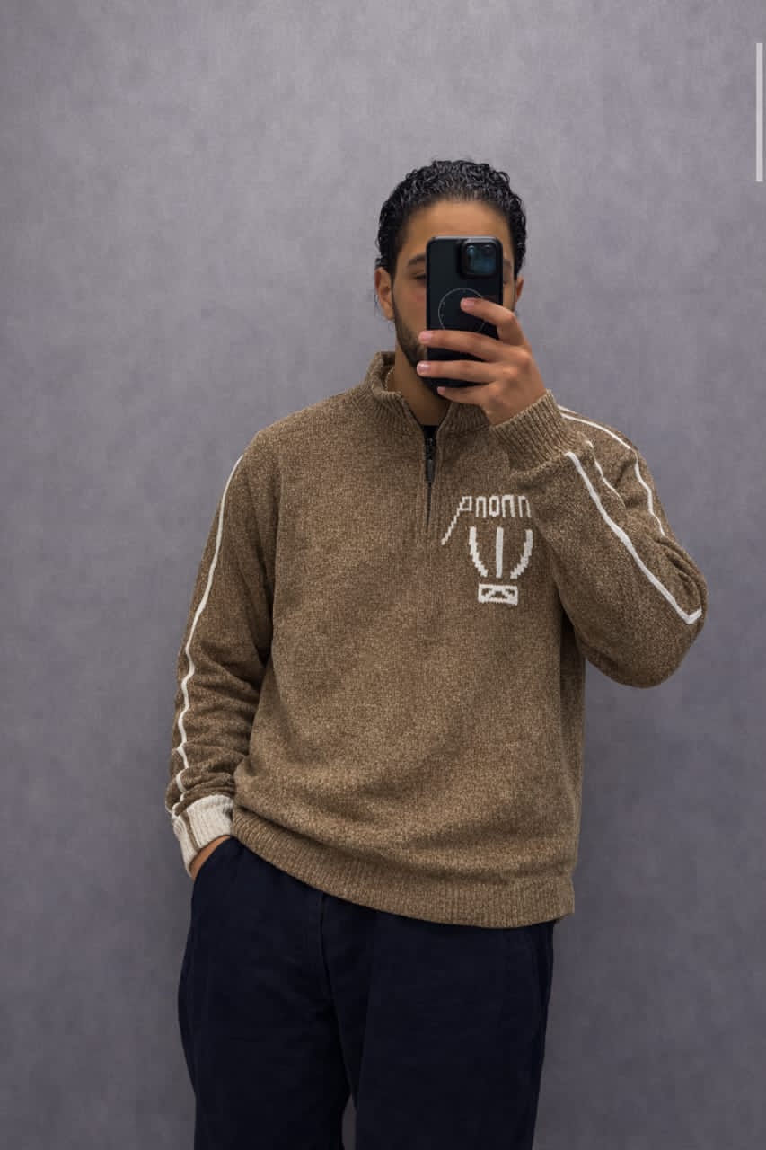 Make a statement with this bold graphic knit sweater. Featuring a relaxed fit and high-contrast patterns, it’s the perfect piece for a modern urban look. Comfortable and warm, it pairs effortlessly with jeans or cargo pants.