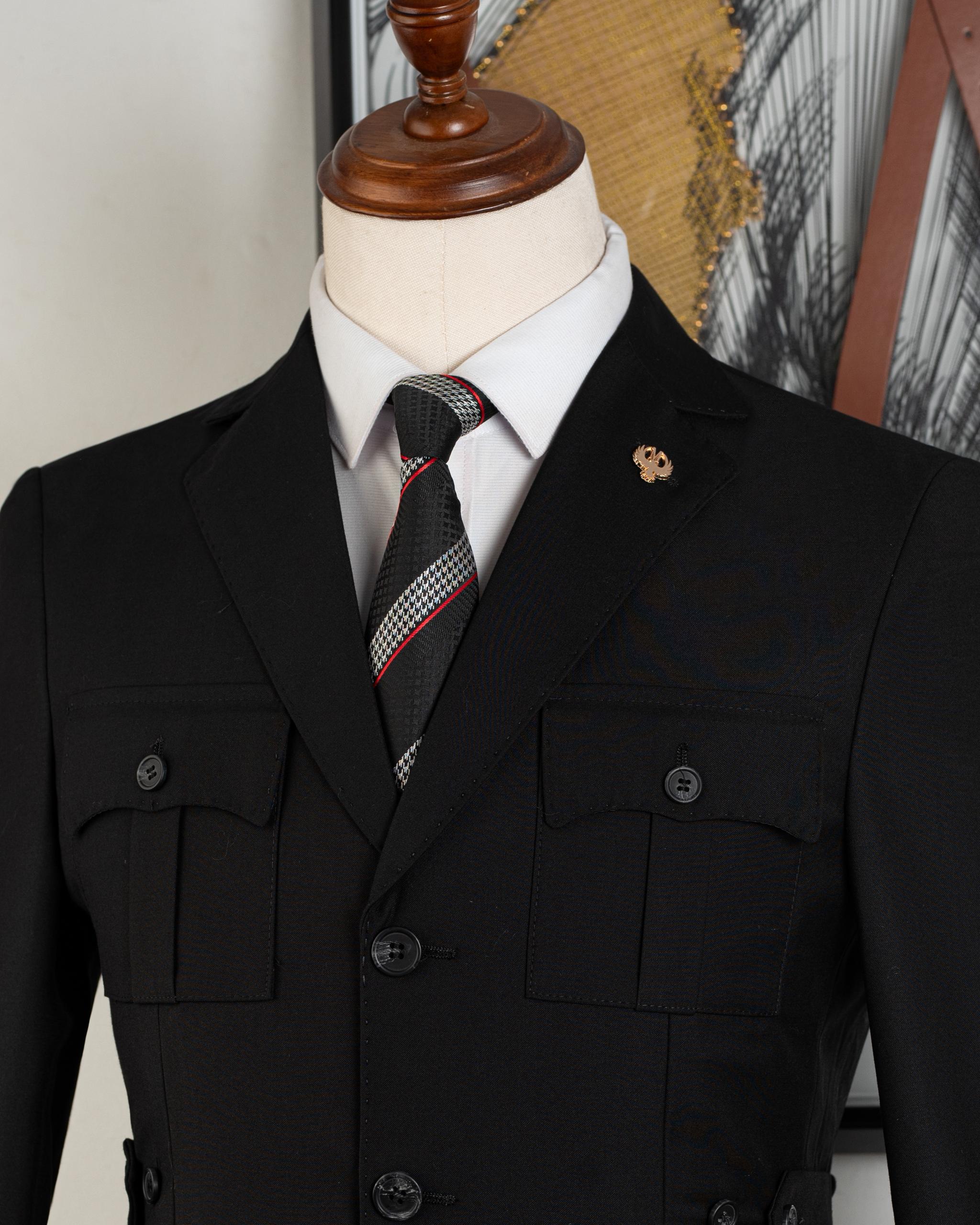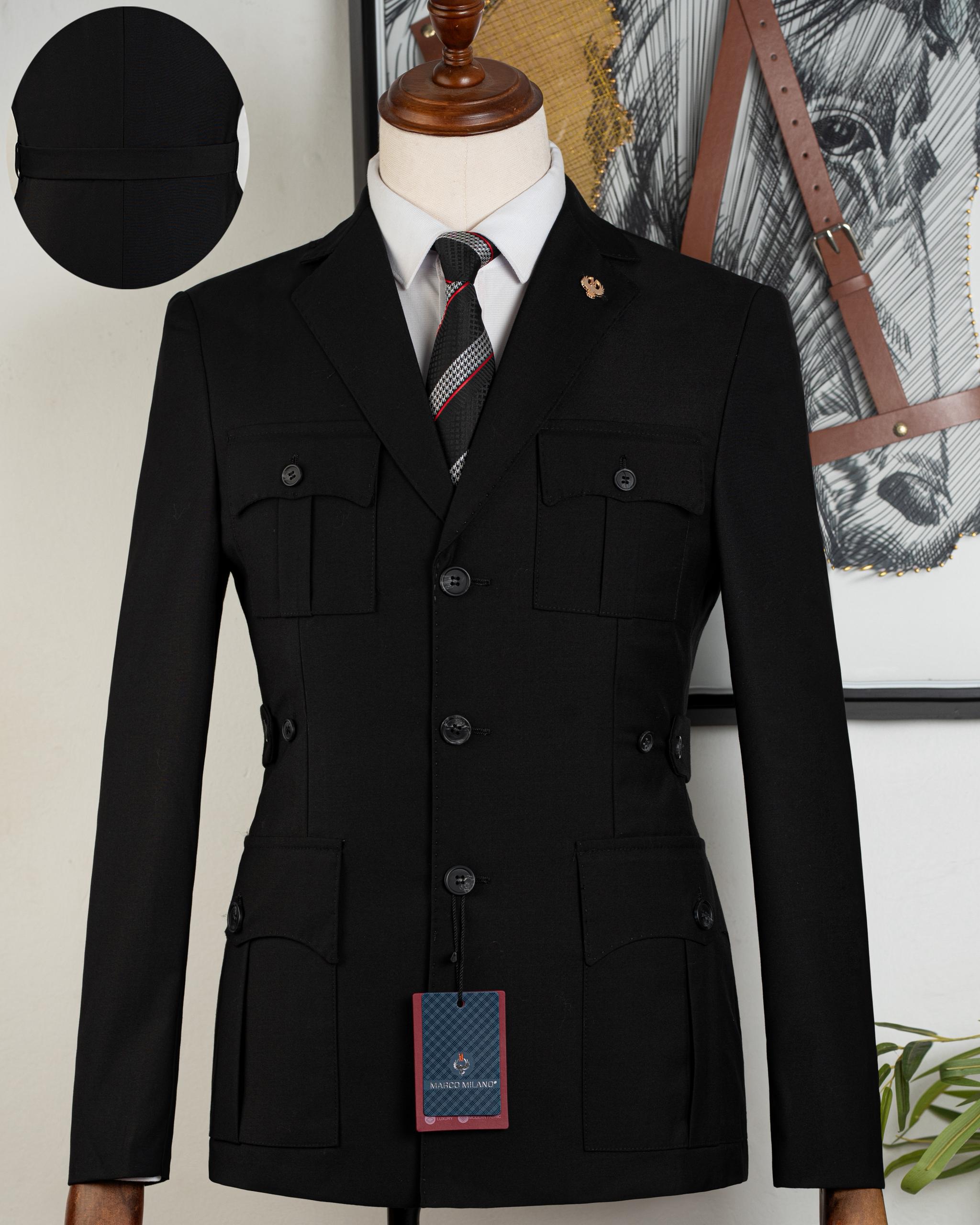 Luxury "Marco Milano" Safari Suit Jacket – Elegant Military Style - Black