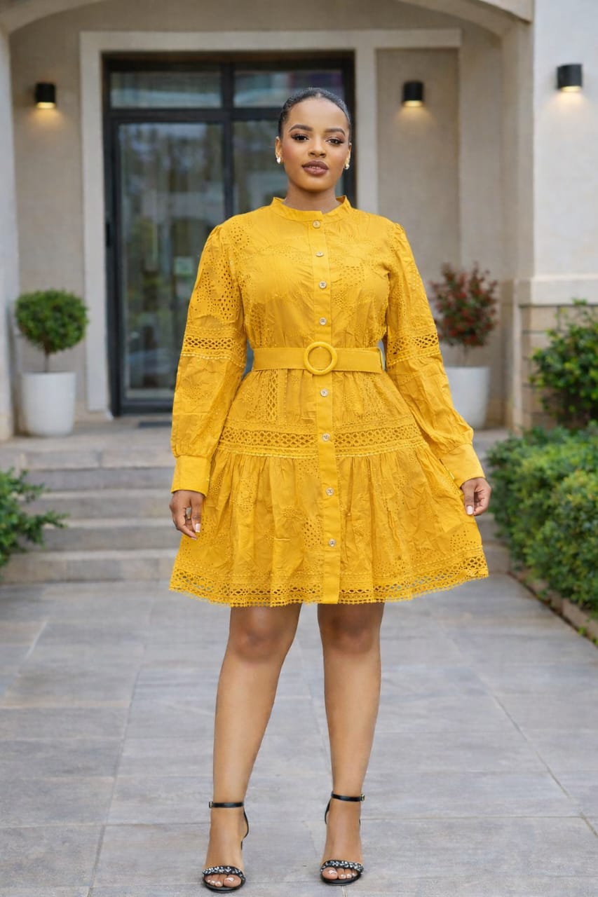 Add a touch of romance to your wardrobe with this stunning eyelet embroidery mini dress. Featuring a delicate mock neck, intricate long sleeves, and a flared ruffled skirt, it creates a feminine and graceful silhouette. The matching belt cinches the waist for a perfect fit. Ideal for garden parties, weddings, or a chic summer brunch.