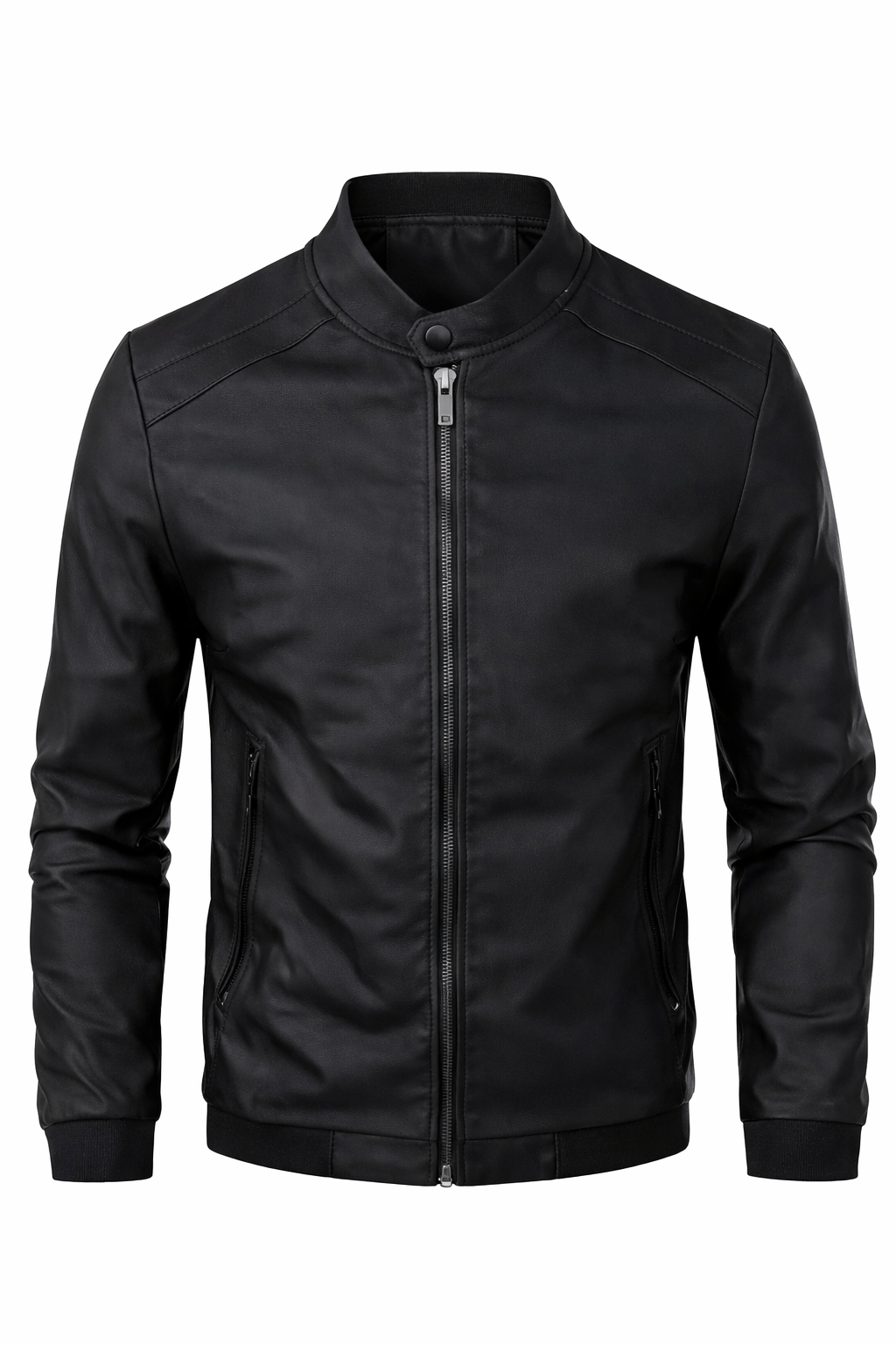 Modern casual jacket made from high-quality fabric, designed for comfort and everyday style. It features a slim fit, a front zip closure, and a stand-up collar with a button detail for a clean, refined look. The jacket also includes side zip pockets, making it both practical and stylish—perfect for daily wear, outings, or smart casual looks.