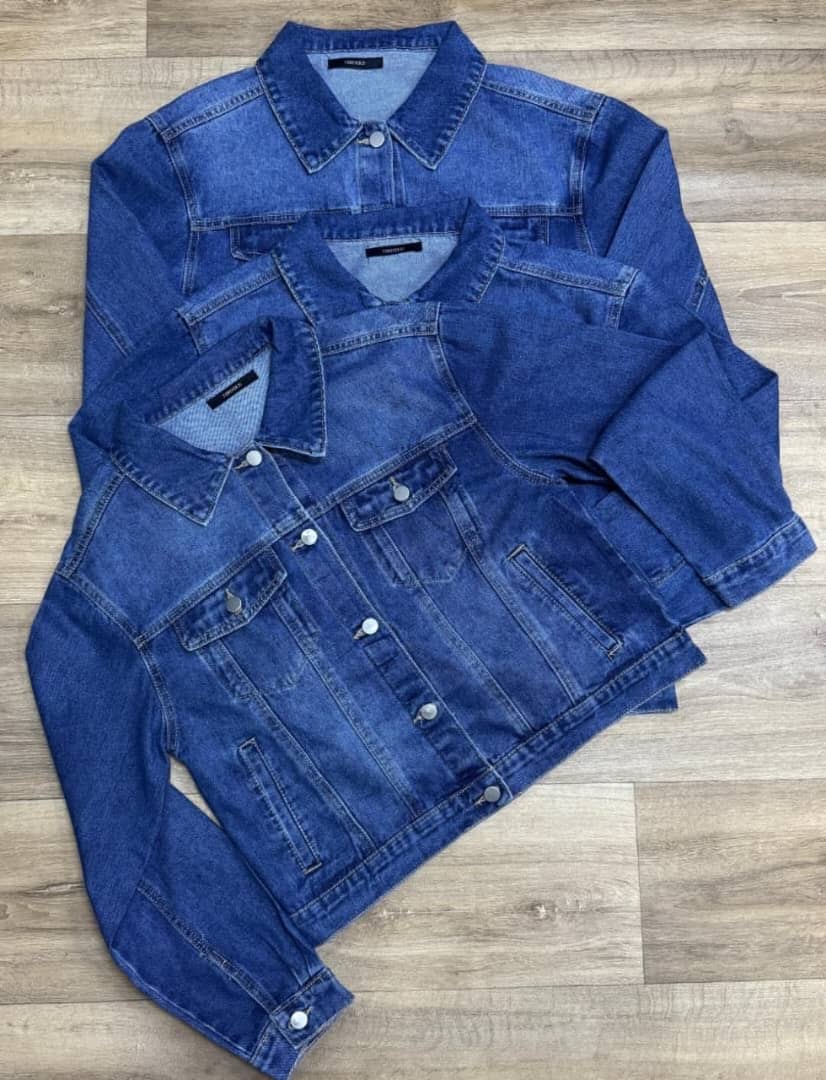This is a timeless denim jacket in a medium blue wash with subtle fading for an authentic, lived-in look.