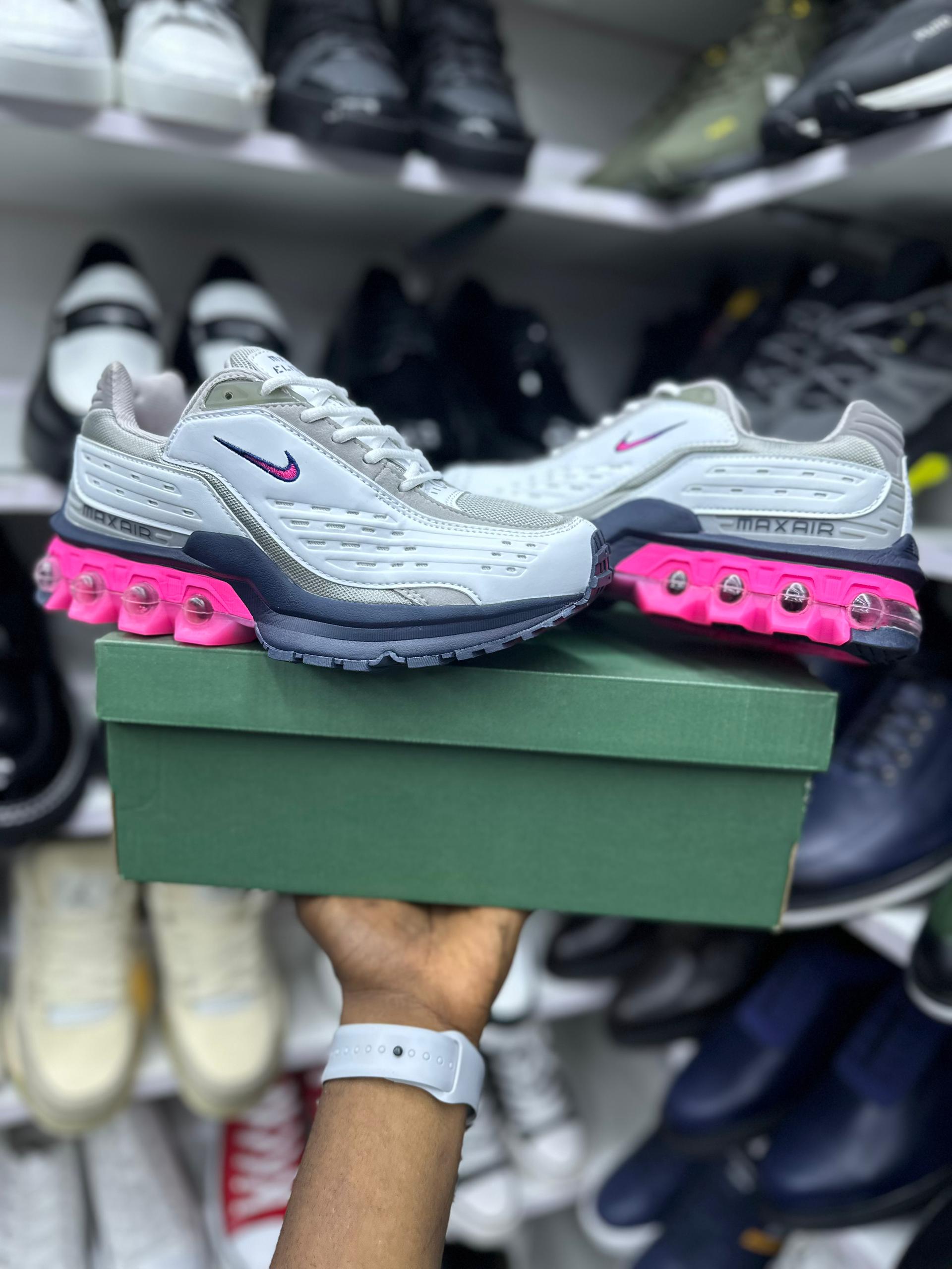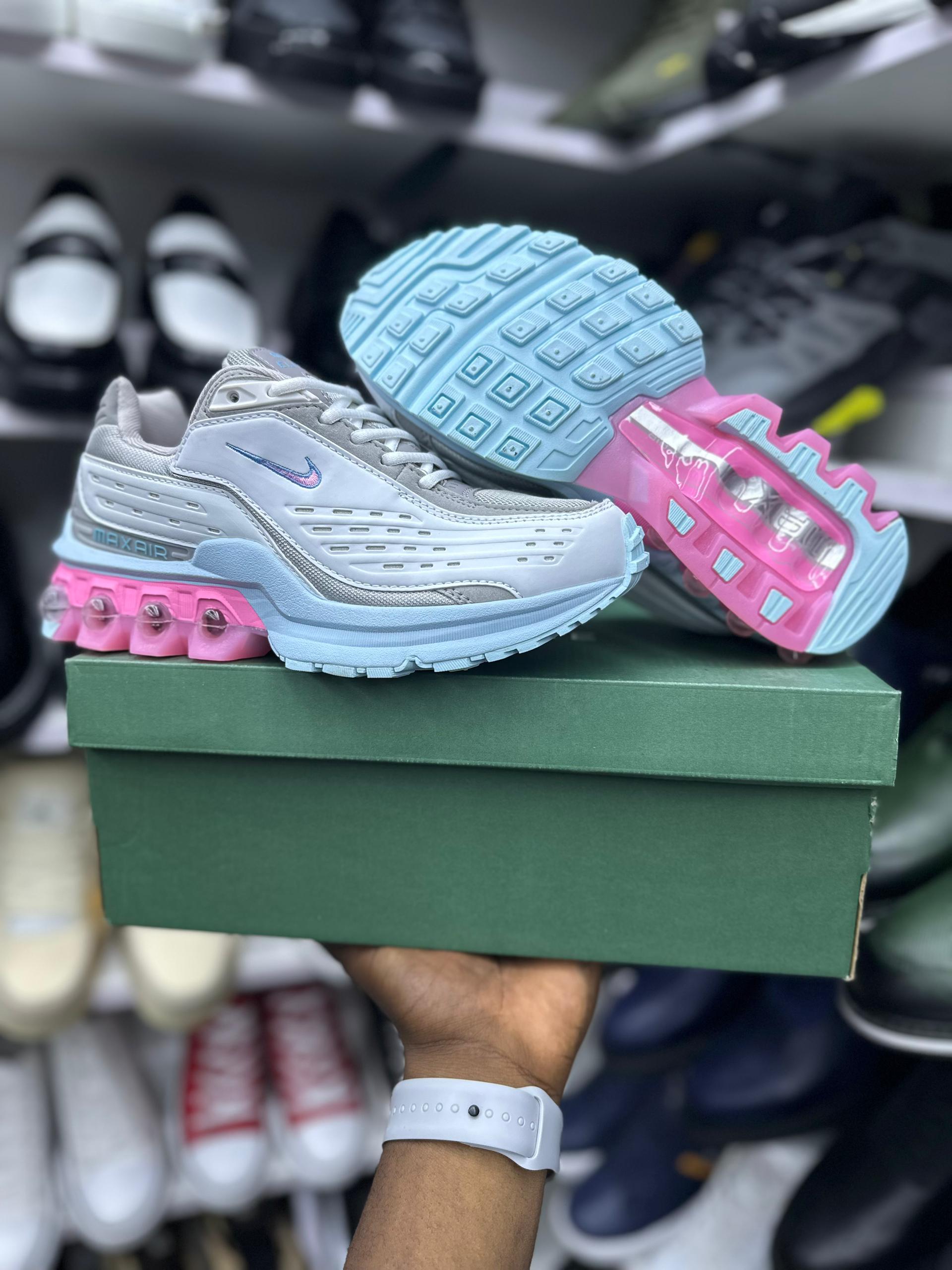 These athletic sneakers stand out with their bold design and vibrant color contrasts.