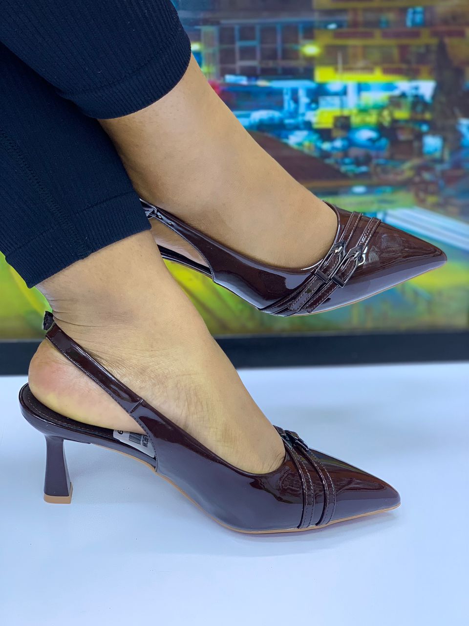 Step into timeless elegance with these stunning patent black slingback pumps. Combining sophistication with everyday comfort, these shoes are the perfect transition piece from office wear to evening outings.