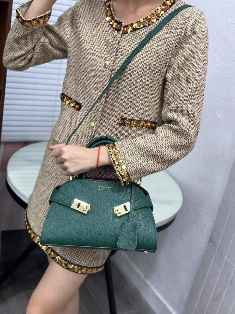 Luxury Grained Leather Handbag in Emerald Green – Elegant Design & Detachable Strap