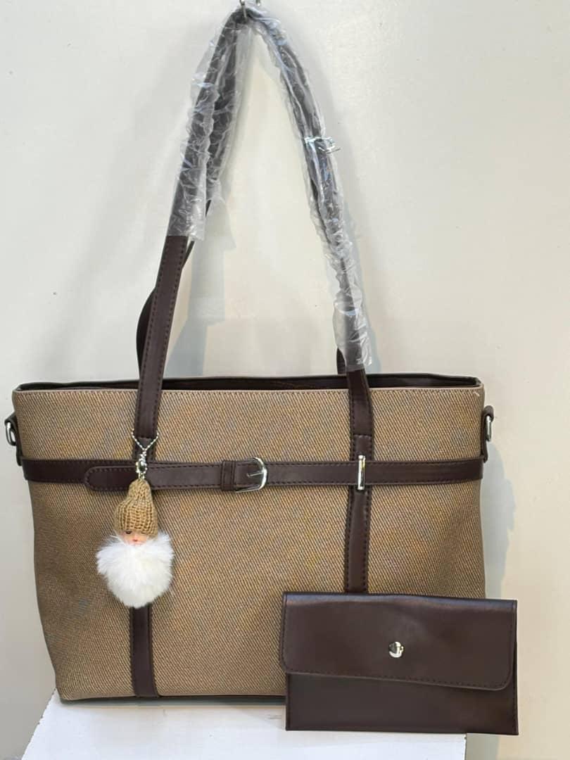 Chrisbella Elegant Set – Sand Beige Structured Handbag & Matching Wallet