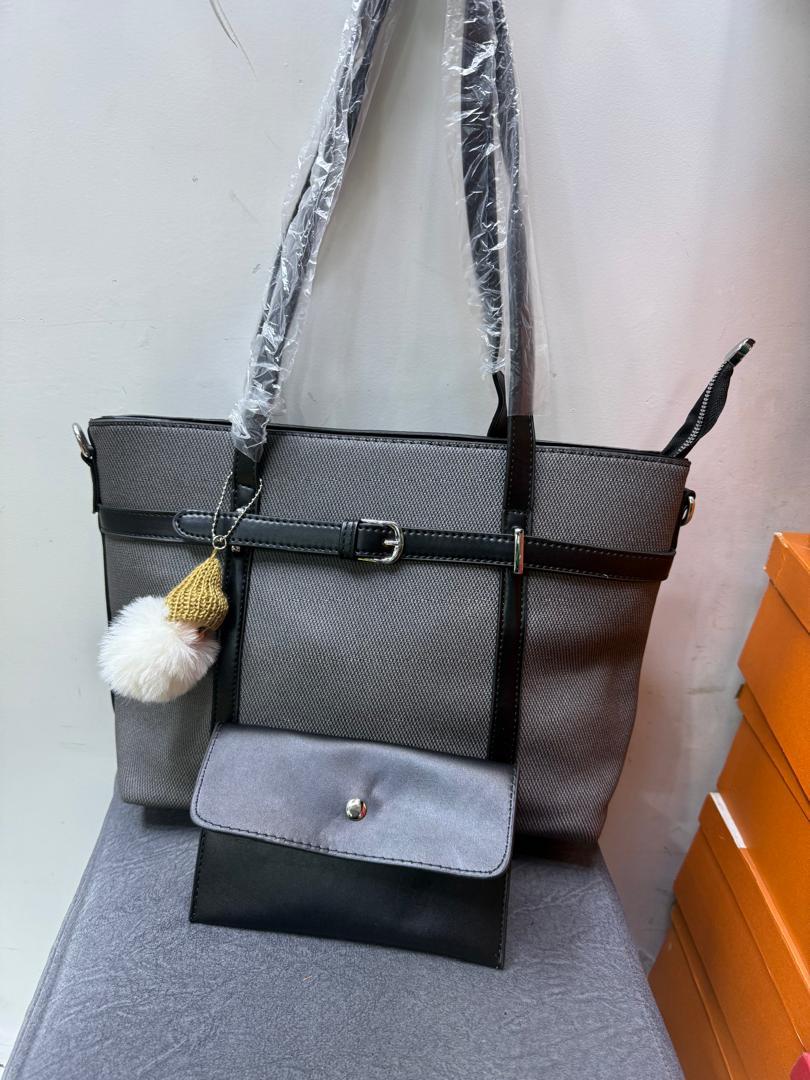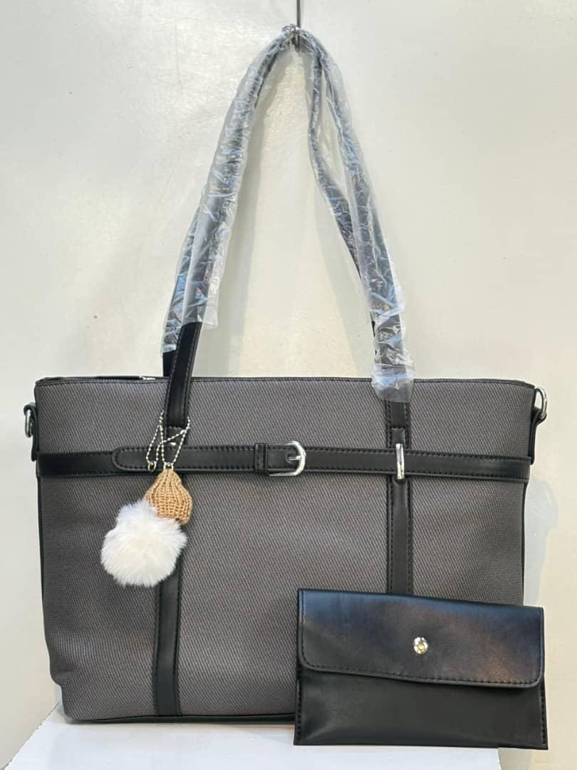 Elegant Charcoal Grey Large Tote Bag – Iconic Monogram Style