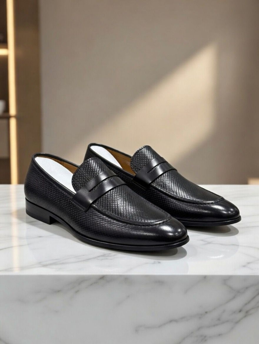 Luxury Crocodile-Effect Derby Shoes – Deep Black with Commando Sole