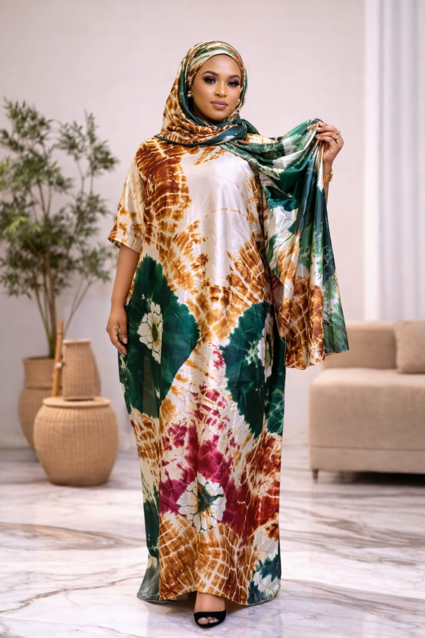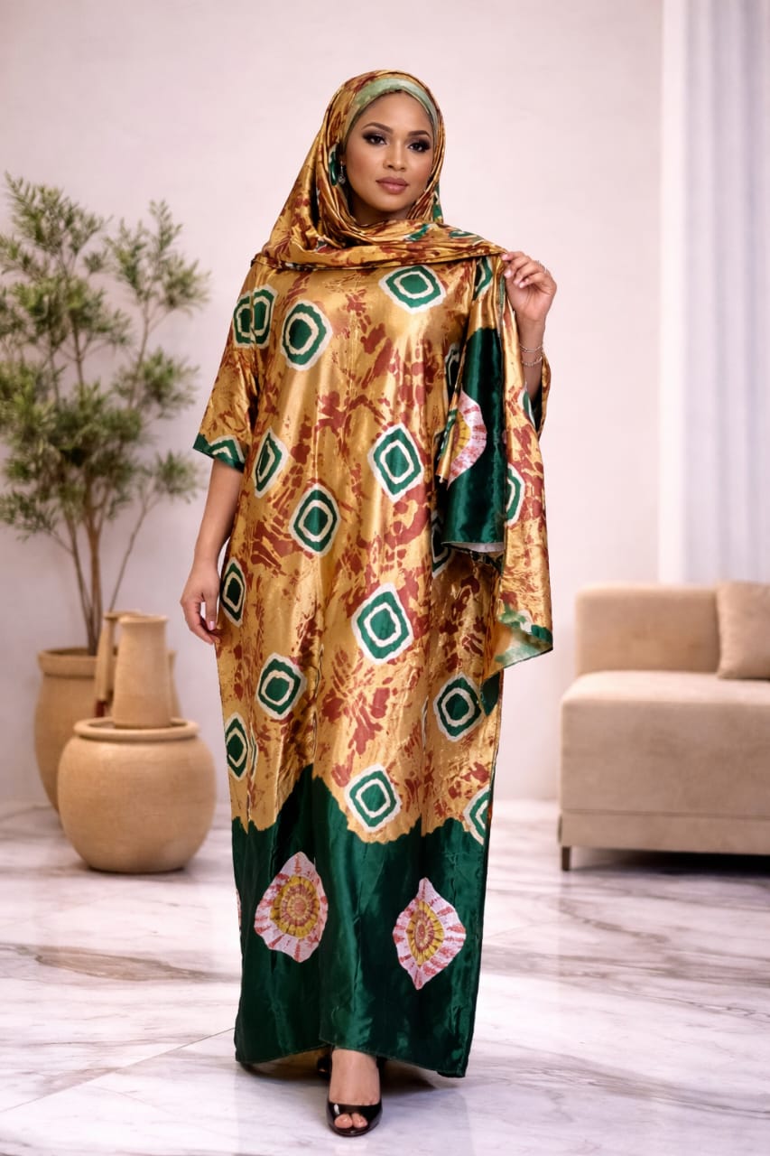 Sunset Luxury Boubou – Batik Print with Embroidered Bodice