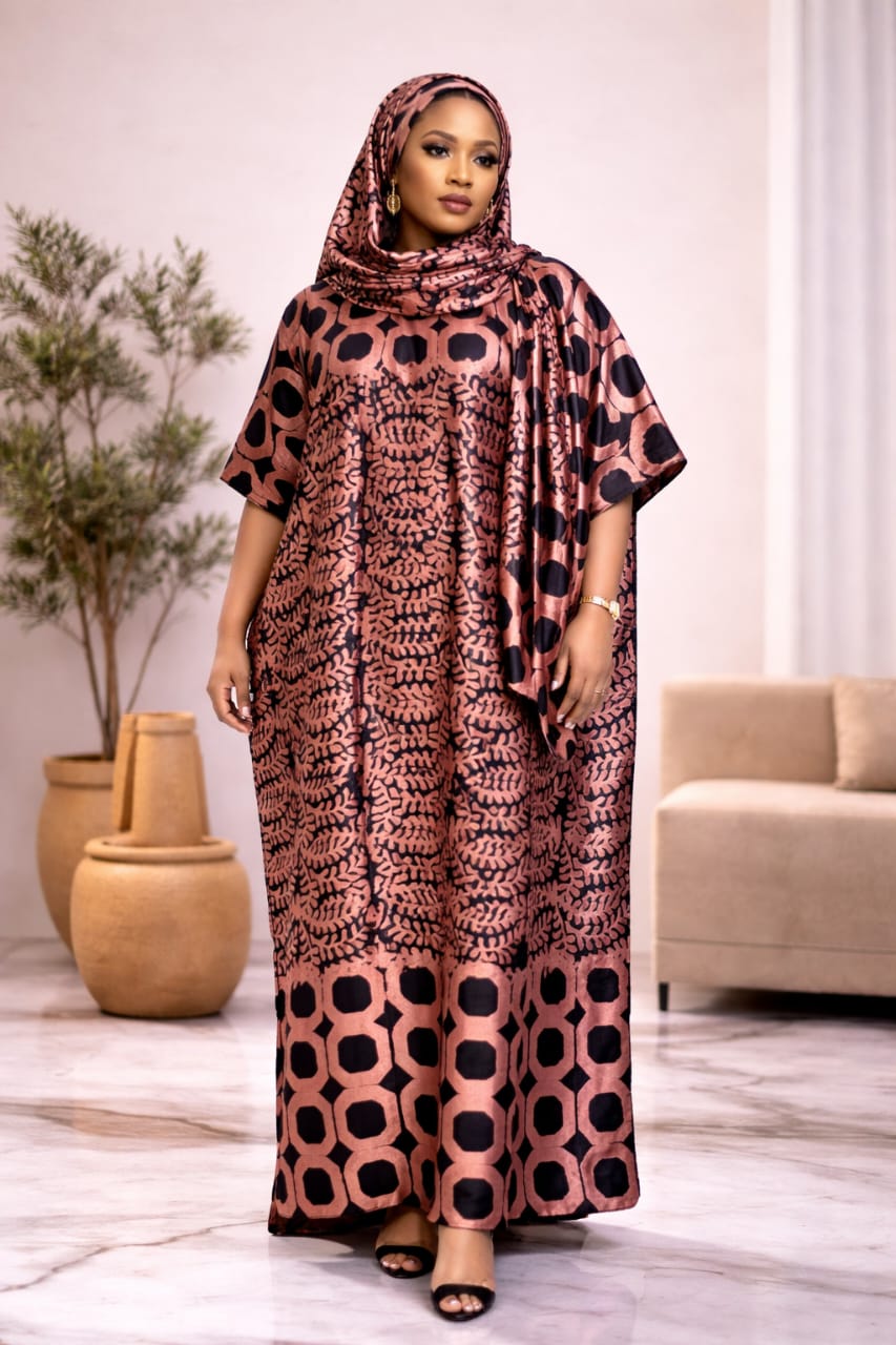 Lioness" Luxury African Boubou – Batik Print with Beaded Embroidery