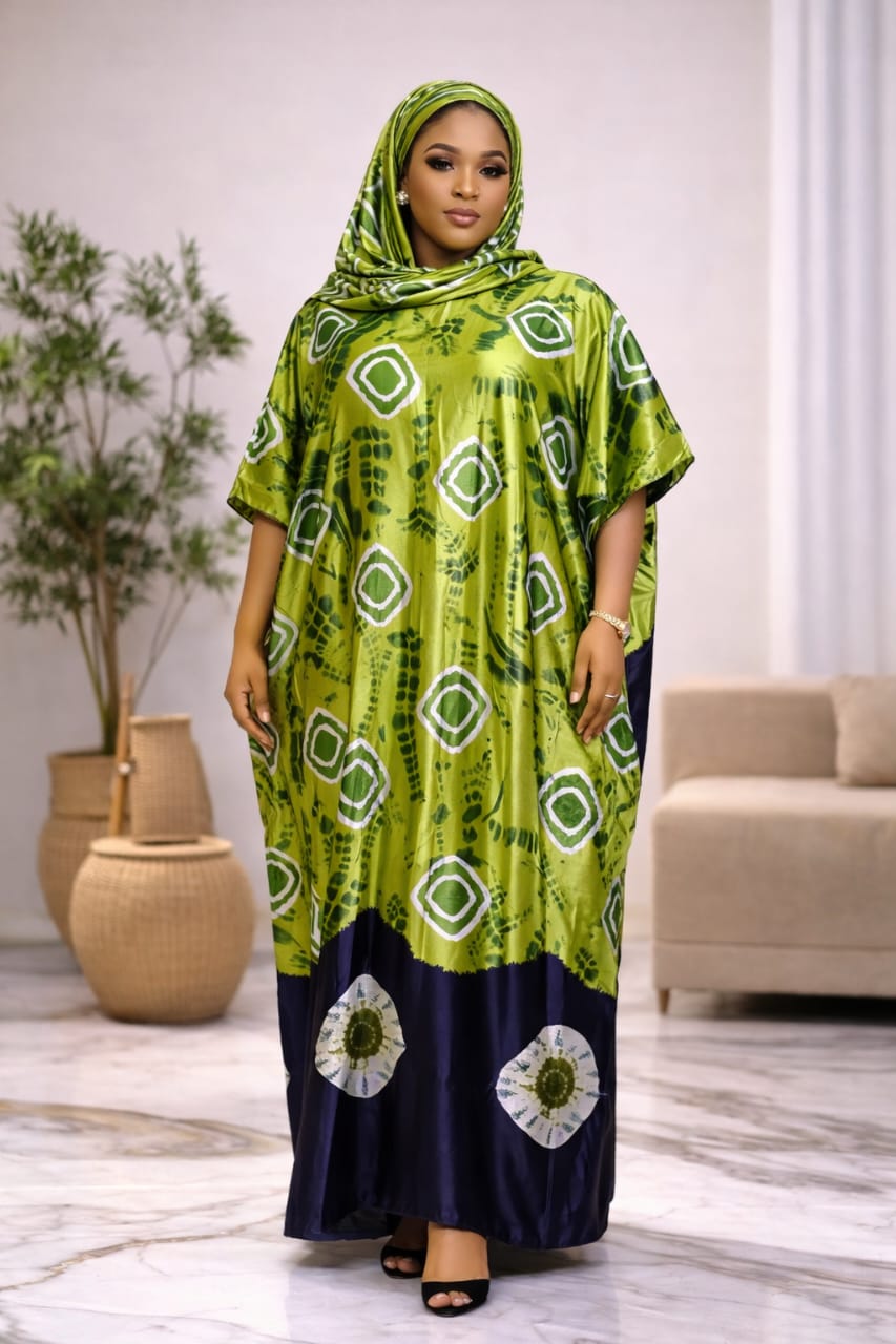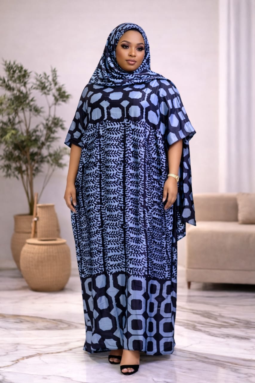"Aurora" Luxury Boubou – Batik Print & Hand-Embroidered Neckline