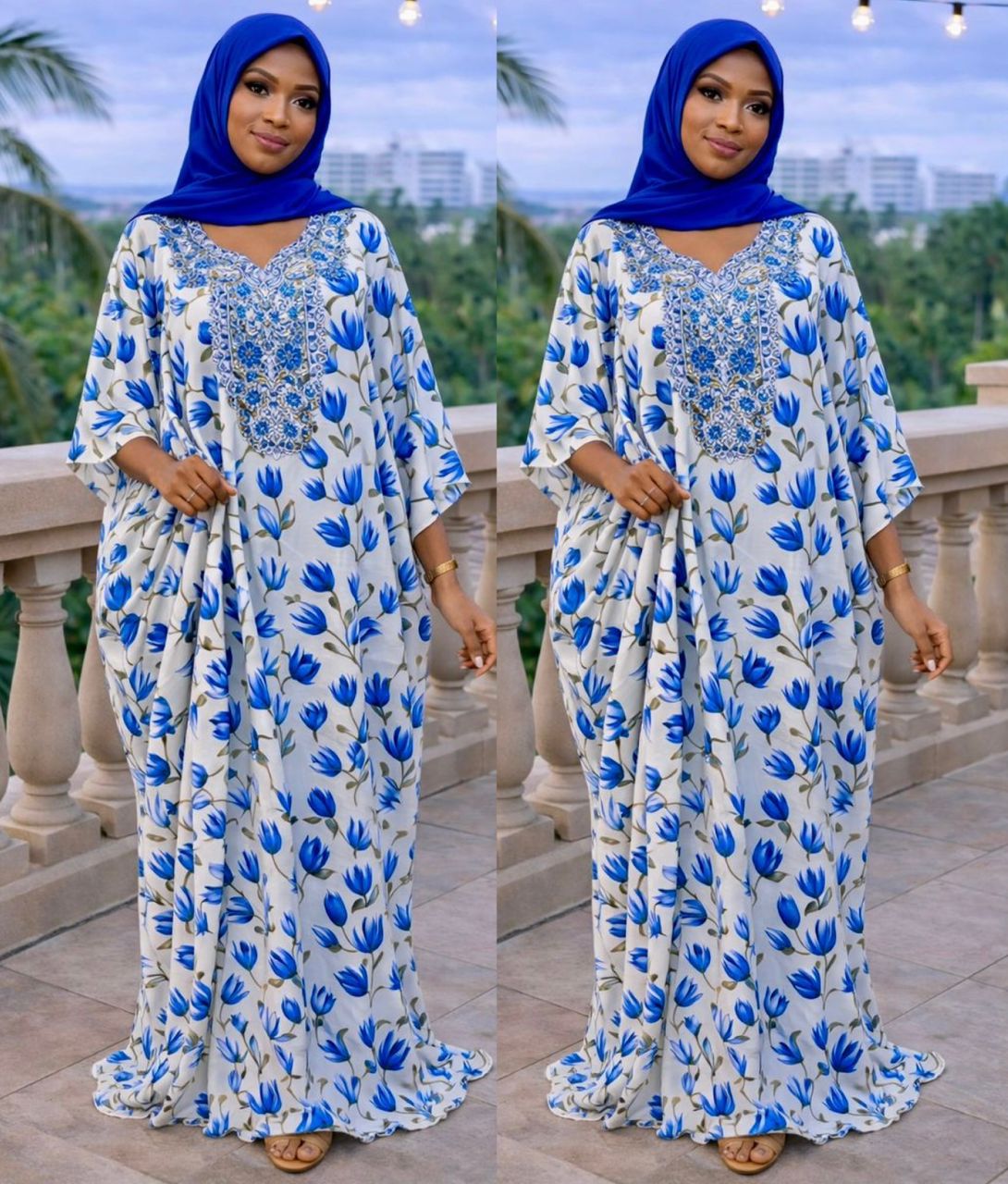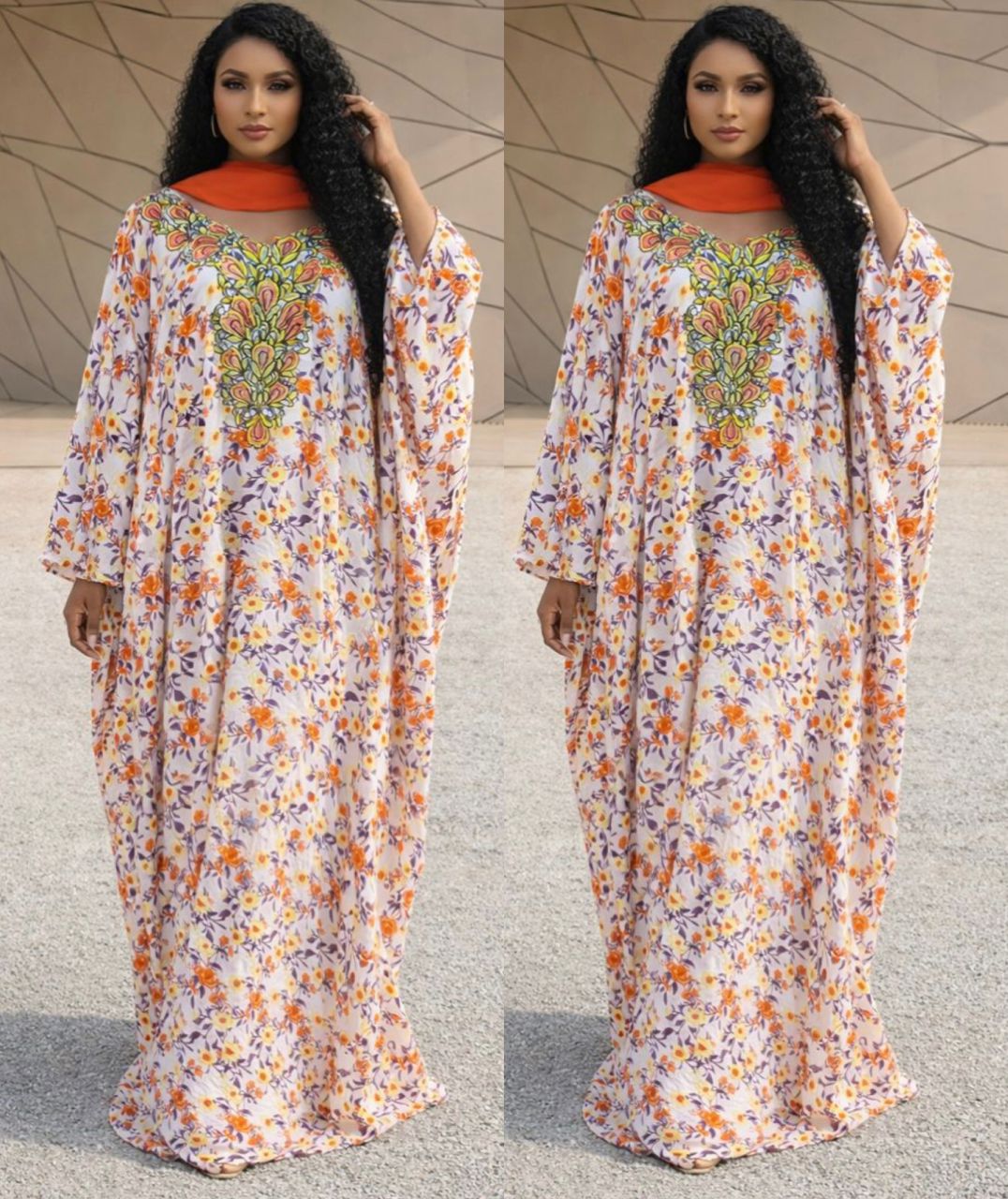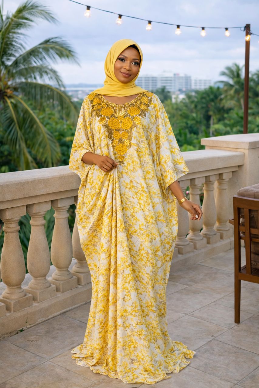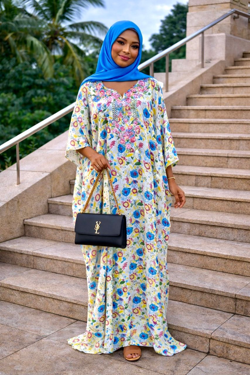 Imperial Garden Luxury Kaftan – Floral Print & Beaded Embroidery
