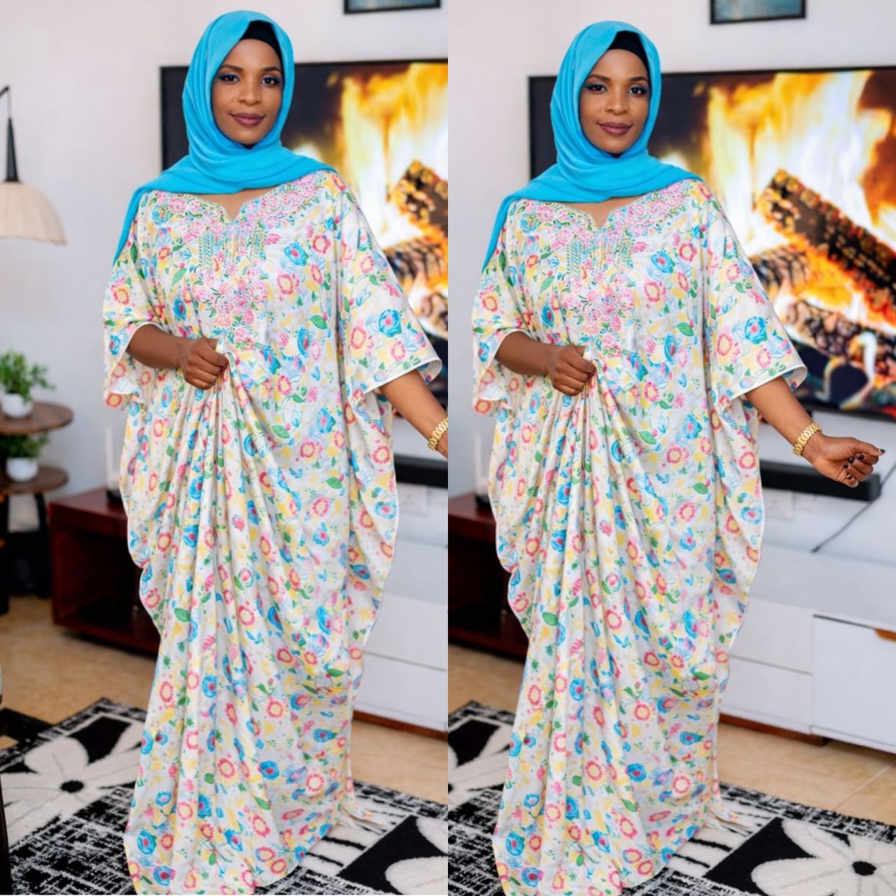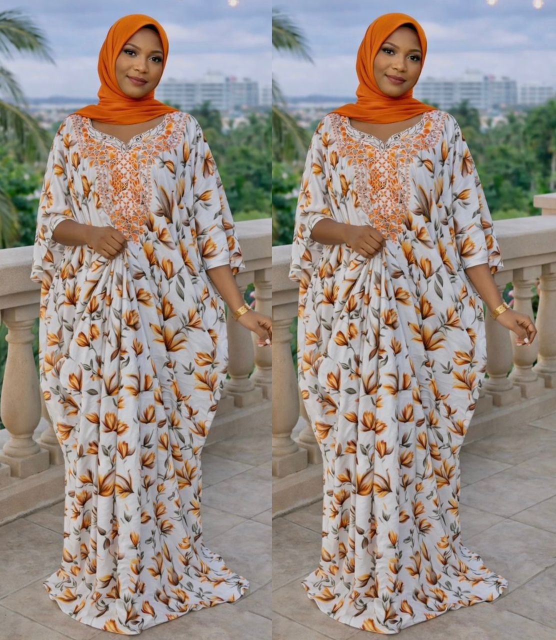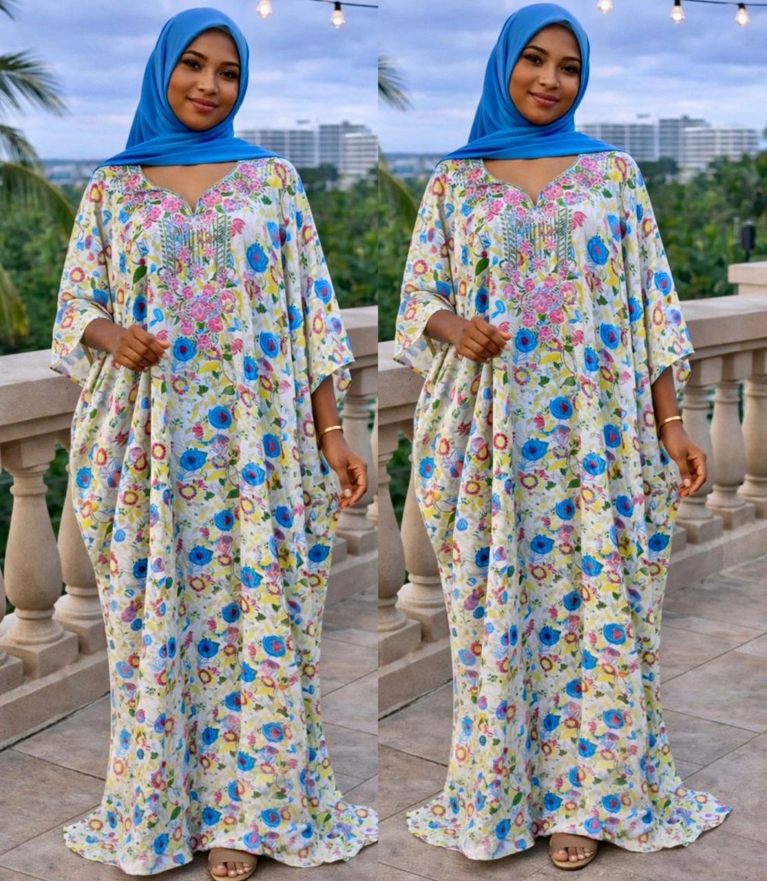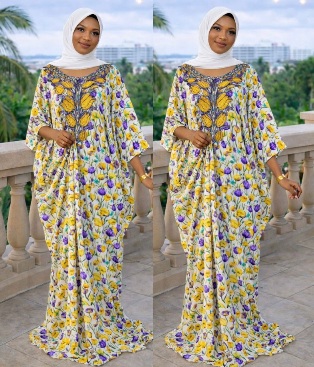 Imperial Garden Luxury Kaftan – Floral Print & Beaded Embroidery