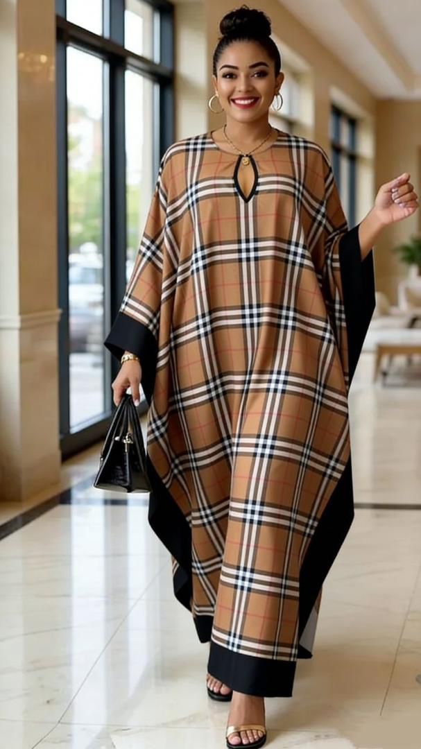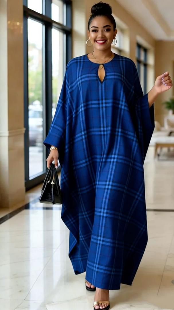 Elevate your wardrobe with this stunning long kaftan dress. Combining traditional comfort with a sophisticated plaid print, this piece is a must-have for those who love effortless elegance.